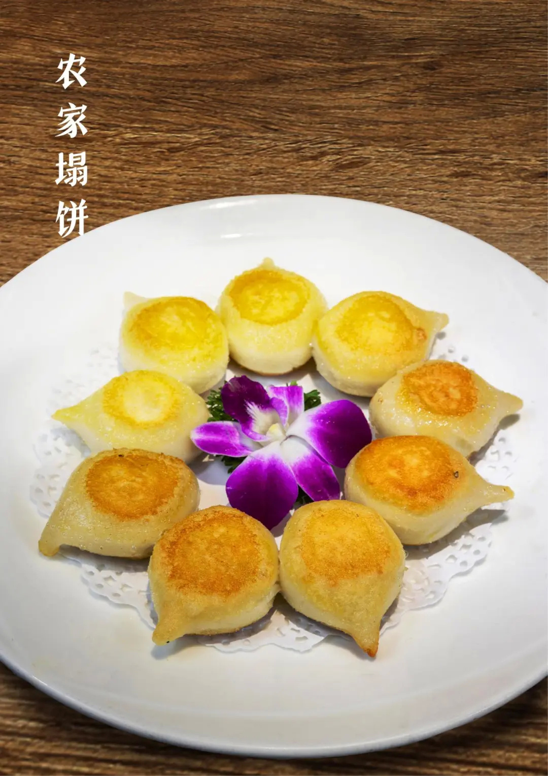响油鳝丝,是金山地道名菜。张堰响油鳝丝始于清光绪年间。柳亚子来张堰尝此菜,大为赞叹,撰文于沪上报刊,由此名扬淞沪。 它选用当地田野中捕获的野生黄鳝为主食材,辅以大蒜葱姜,通过炒制烹饪,变成一道老少皆宜的美味。 此菜红绿黄白,色泽鲜艳;鲜嫩爽滑,入口不腻;葱姜蒜椒,香气扑鼻;盆装美观,上桌时“噼啪”(浇入烧热的熟猪油)有声,令人食欲大开。 浇油的瞬间,热油和蒜泥、葱花碰撞,声音清脆,香味扑鼻。无论配米饭还是面条,都是非常不错的选择。 PART 2 主食之农家塌饼
