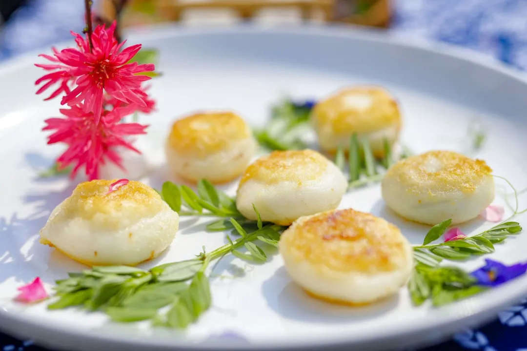 农家塌饼,是金山农村的家常点心。“塌饼”与方言“太平”谐音,寓意“太太平平、幸福美满”。 它包含麦芽塌饼、南瓜塌饼、毛豆塌饼、咸菜塌饼等多个品种,食材多按照时令就地取材,手工制作。 麦芽塌饼,采摘新鲜艾草、佛耳草,洗净后焯水,剁碎后和麦芽粉、糯米粉按比例混合,慢慢揉成绿色的面团,取小块面坨粘上芝麻,压成饼状,放入蒸锅蒸熟,再放入油锅炸至墨绿色。 南瓜塌饼,将南瓜洗净去皮切片,上锅蒸熟,放入糯米粉中,不停搅拌融合,揉到面团不黏手时即可。取小块面坨,包上满满的红豆沙,搓成球状后压扁,裹上蛋液,放入油锅煎至两面金黄即可。 解的是时令馋意,吃的是无穷乐趣,夏日的炎热也会在夏之宴的道道美食佳肴中得到舒缓。 生活有光,美食有爱。让我们走进金山这些饭店,从酸、甜、咸、香、脆、软、糯的味觉体验中,爱上金山的夏天! 资料:文旅金山 编辑 | 翁羽 责编 | 翁羽 俞萝寅