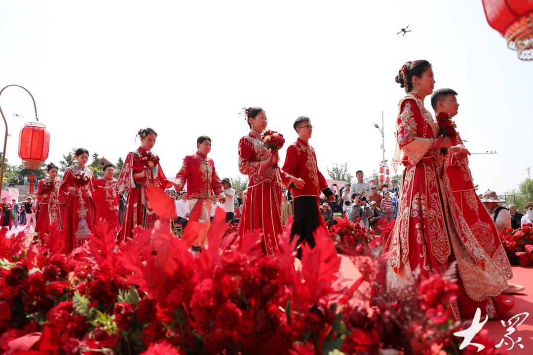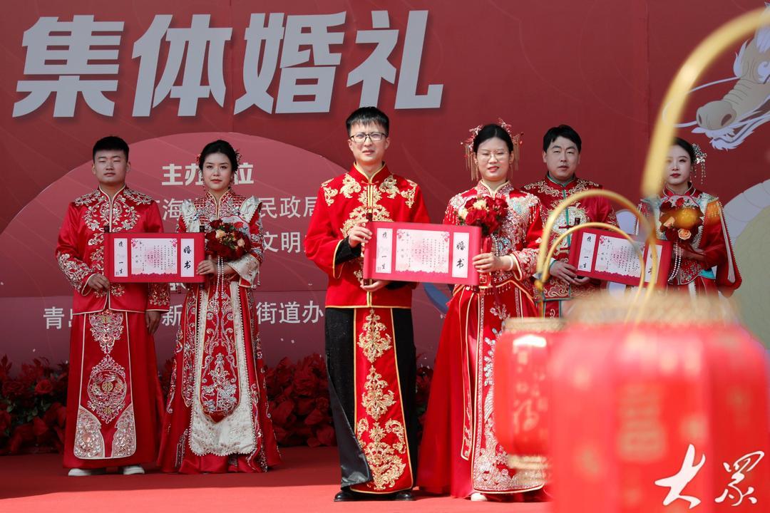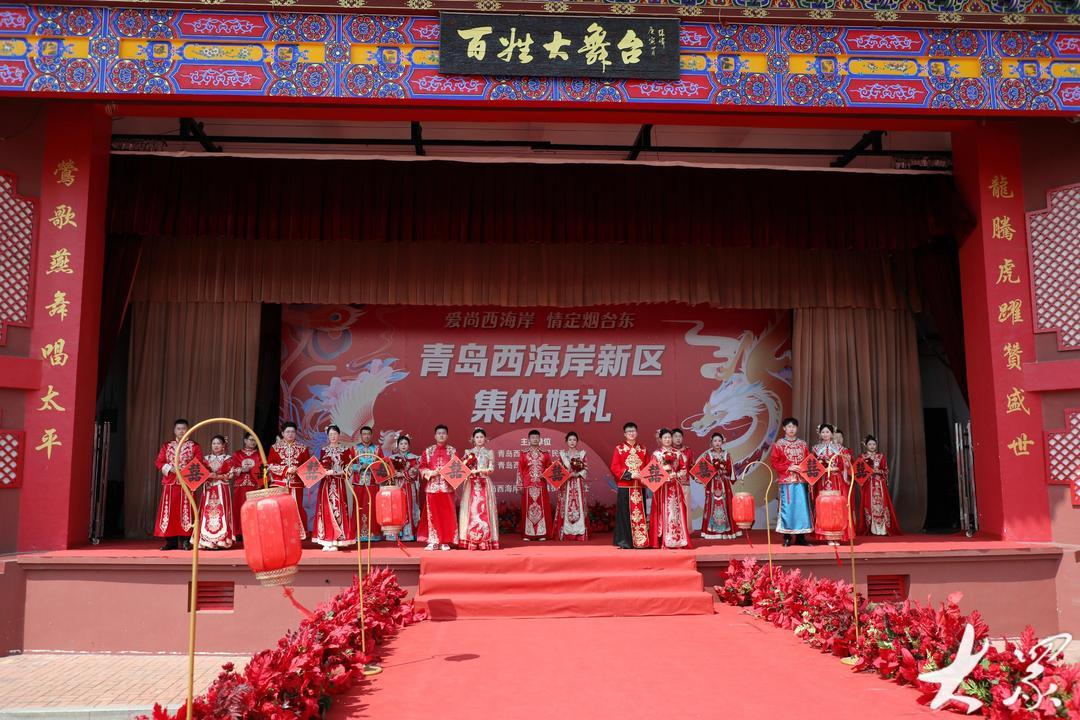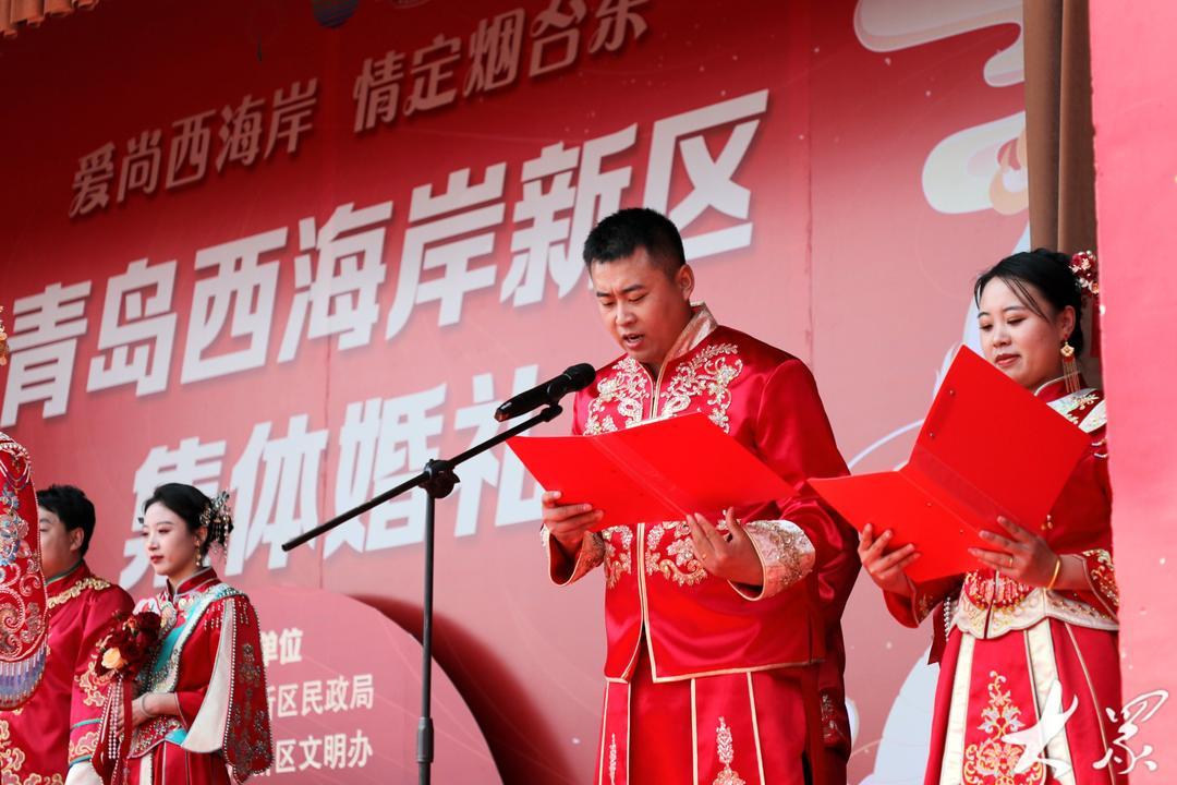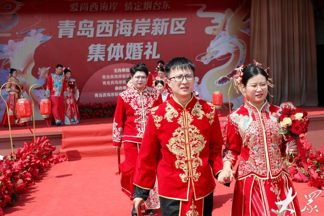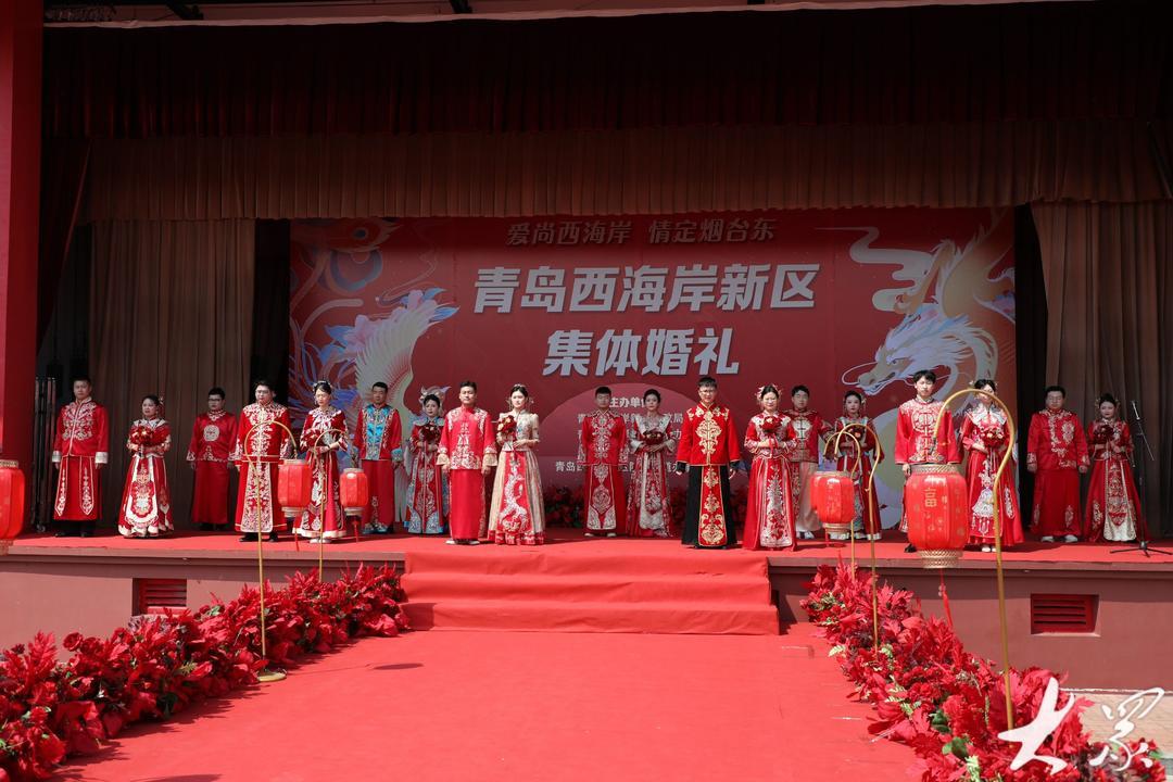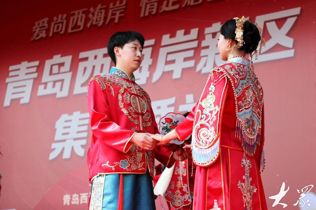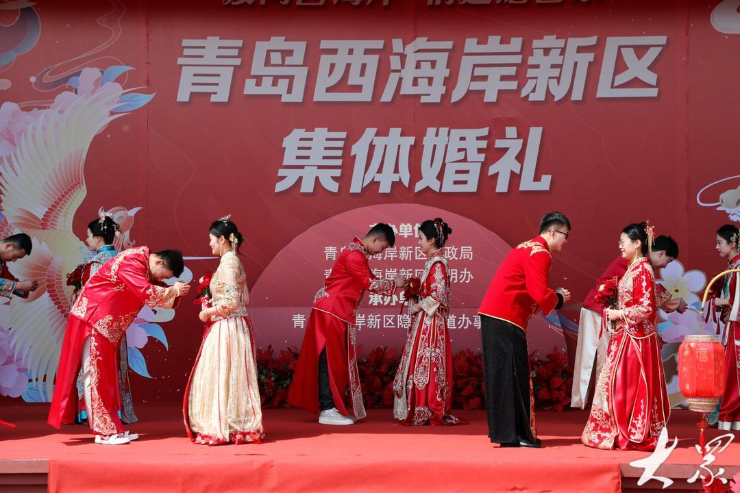 当日,青岛市新时代文明实践集体婚礼(青岛西海岸专场)在隐珠街道烟台东社区婚俗文化广场举行,10对新人在亲友的祝福声中,以简约又不失浪漫的方式步入婚姻的殿堂,以实际行动践行美德健康生活方式,引领绿色节俭、健康向上的婚俗新风,展示了新时代新青年的良好风貌。