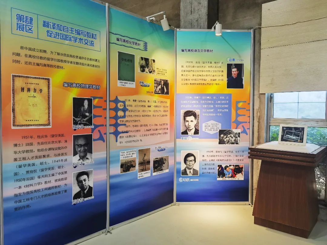 本次展览共分4个展区,通过详实的史料和照片,围绕中国高等教育状况,中国留学生学成归国投身高等教育现代化制度体系建设,设法填补我国高等教育部分学科建设空白、翻译和自主编写教材以及促进国际学术交流等,展示了回国留学生对我国高等教育现代化所作出的积极贡献。