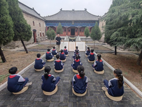“闵子骞跪求他的父亲说,‘母在一子寒,母去三子单’。”近日,在济宁市鱼台县张黄镇闵子祠内,闵子骞第78代嫡孙闵维君向前来开展研学游的鱼台县闵子小学的学生们讲述闵子骞“芦衣顺母”的孝行事迹。
