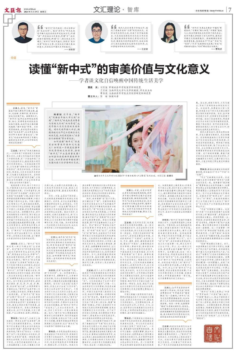 如何读懂“新中式”热度背后的审美价值和文化意义?如何进一步深度挖掘中华优秀传统文化资源,推动“新中式”产业高质量发展?如何在传承创新中赓续中华文脉,向世界讲好中国故事?本报约请三位学者研讨交流。