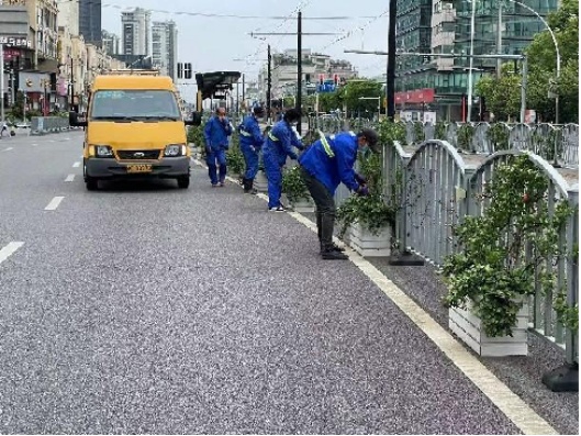 松江区采用“一路一方案”“一路一技师”的养护管理模式,组建了一支20人的“百条花道”专业养护队伍,配有专职技师,不断积累和探索花灌木养护管理技术经验,保障全区花道的景观成果。