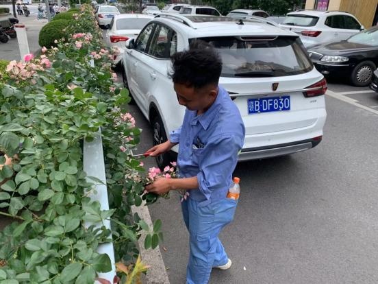 这条花廊由松江区园林中心于2016年建设完成,由65套拱形花架和400株藤本月季“安吉拉”组成。如今这些安吉拉长势旺盛,正值盛花期,观赏效果最佳。背后却离不开养护工作者长期的精细化养护和辛勤付出。