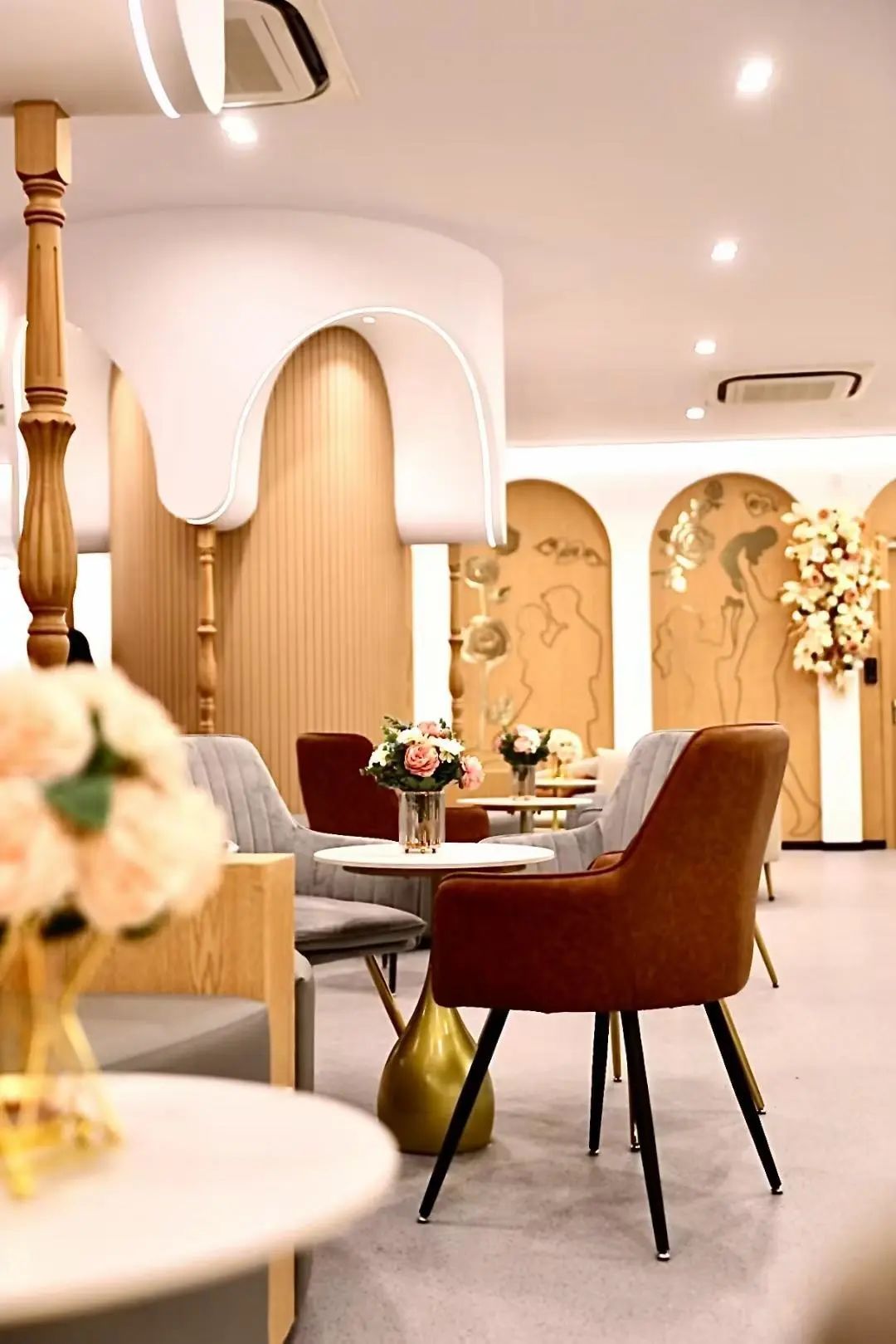 新装修的大厅以纯洁的黄、白为主色调,明亮通透简约温馨,创新 “步入式”登记场景,大量融入“拱门”元素,“拱门”也寓意着“幸福门”,步入结婚登记的“拱门”,即意味着浪漫幸福之旅将从此处开启。还有一面特别的甜蜜墙,花朵簇拥下,墙上的三个造景分别代表了恋爱、结婚、组成家庭的三个阶段,成为不少新人的拍照背景。