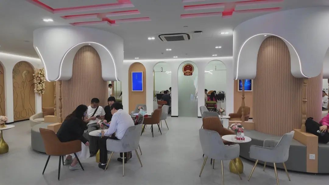 改造后的大厅服务配套十分齐全,将原来的咨询引导区、候登区、结婚登记区、颁证厅、休息区等都进行了全面升级,从踏入大厅开始,带着有标识帽子的“婚管家”陪伴引导新人从取号、复印材料、自助服务一体机信息登记,到自助拍照机使用、等候叫号、办理登记等各环节全程帮办,用周到暖心的服务,让新人们获得满满的幸福感和满足感。