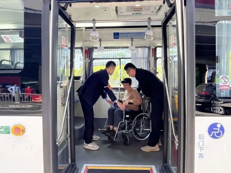 杨高公交一分公司业务经理吴晋波表示,81路作为敬老爱老示范线,公司对驾驶员加强培训,确保安全,在日常工作中自觉做好“五个多一点”“五慢六必”等关爱举措,让绿色公交出行服务更舒适、贴心。