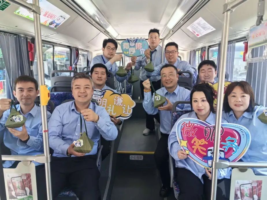 在陆家嘴连廊公交枢纽站,来自杨高公交一分公司的服务明星们用“敬业粽”的形式,挨个给驾驶员送上关爱,感谢广大驾驶员为保障城市公共交通安全运行的辛勤劳动。