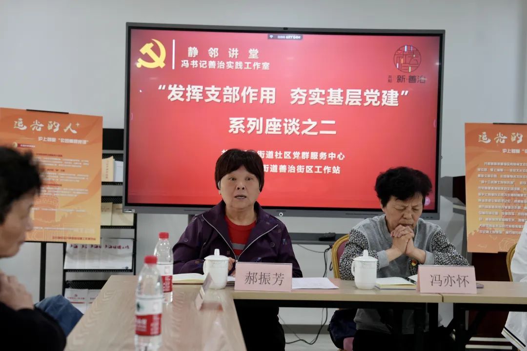 近日,共和新路街道党群服务中心携手善治街区工作站,通过冯书记善治实践工作室“下午茶”平台,邀请工作室的“老法师们”为居民区党支部书记开展以“发挥支部作用,夯实基层党建”为主题的座谈会,就如何进一步推进基层党支部党建工作高质量发展,进行了深入交流和探讨。