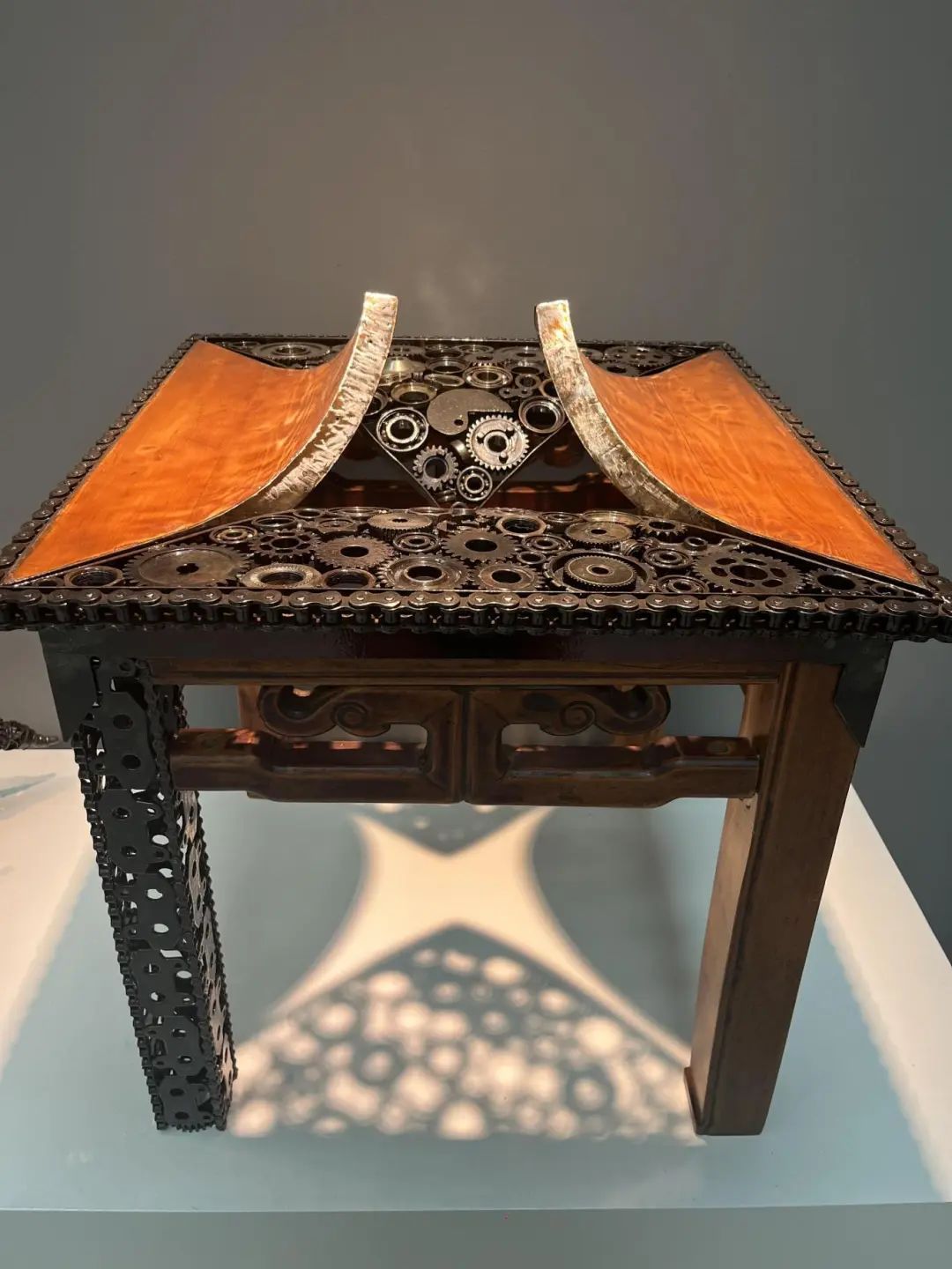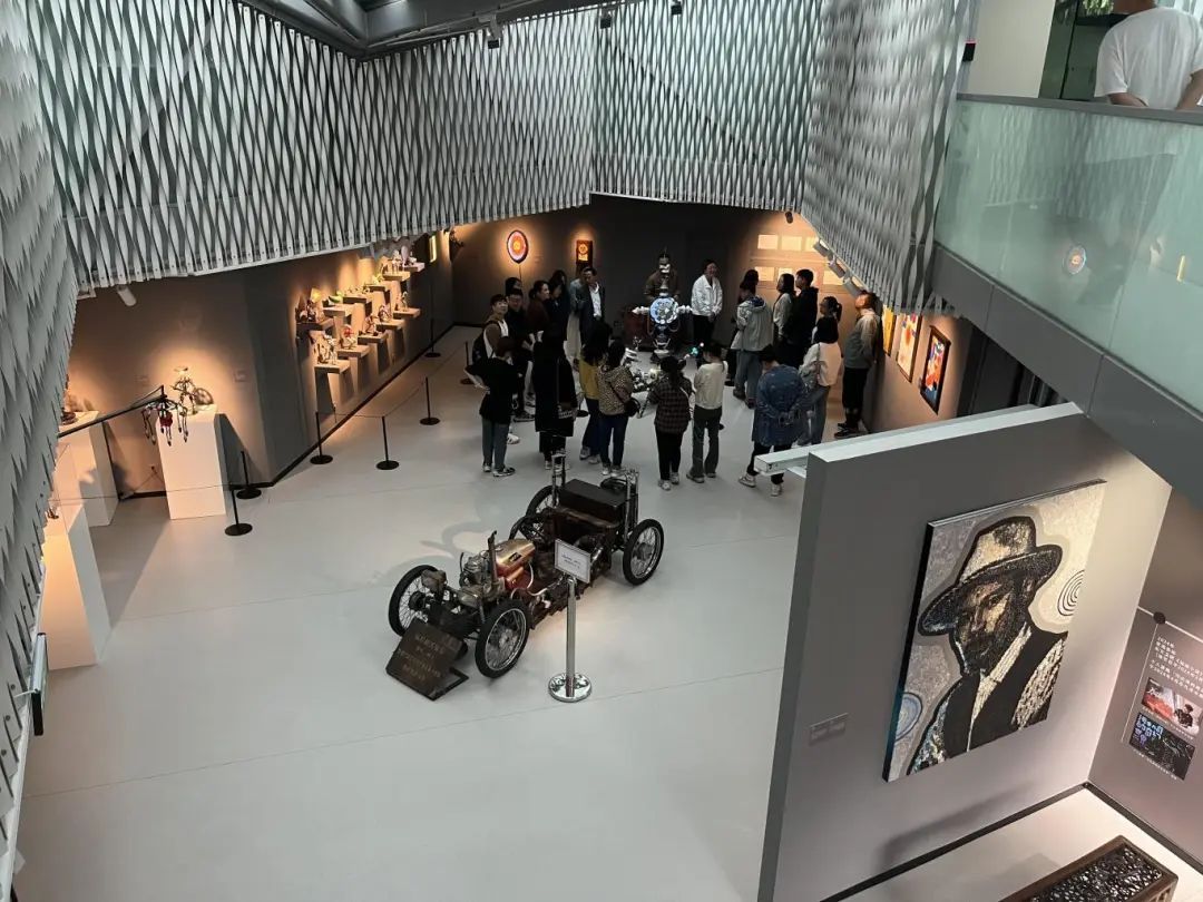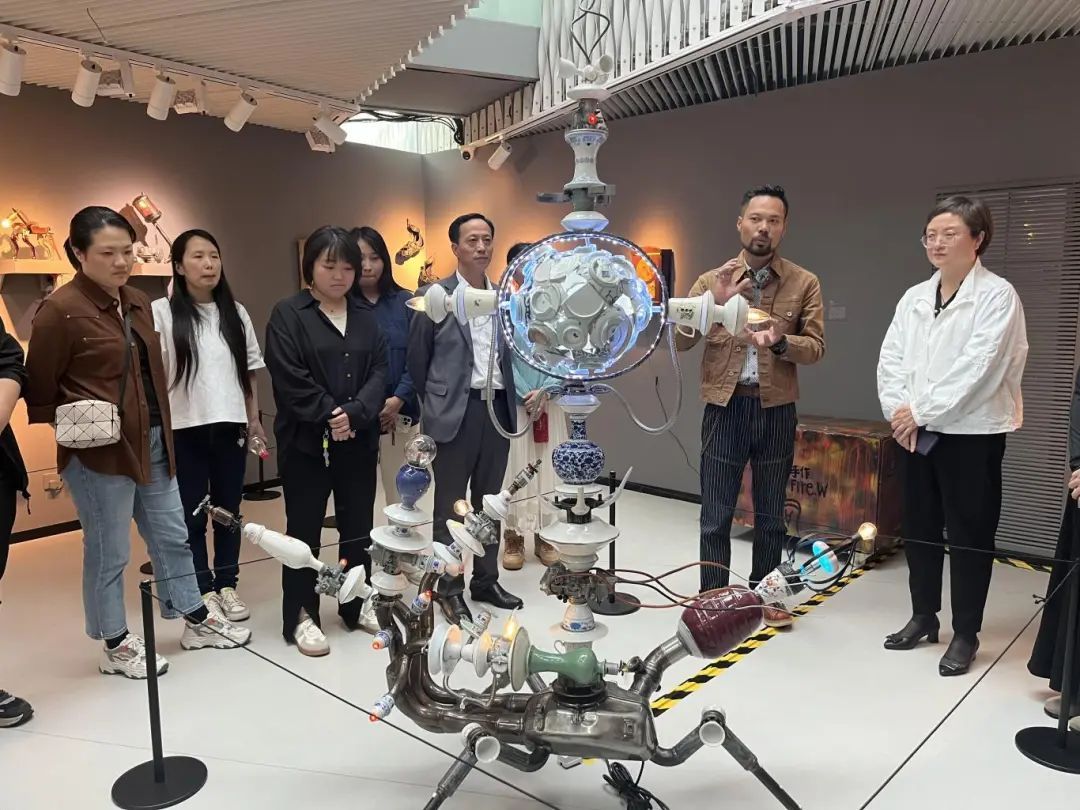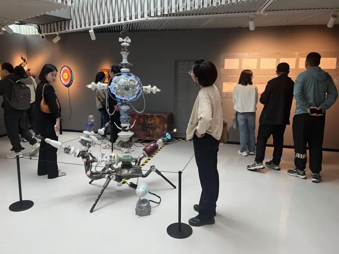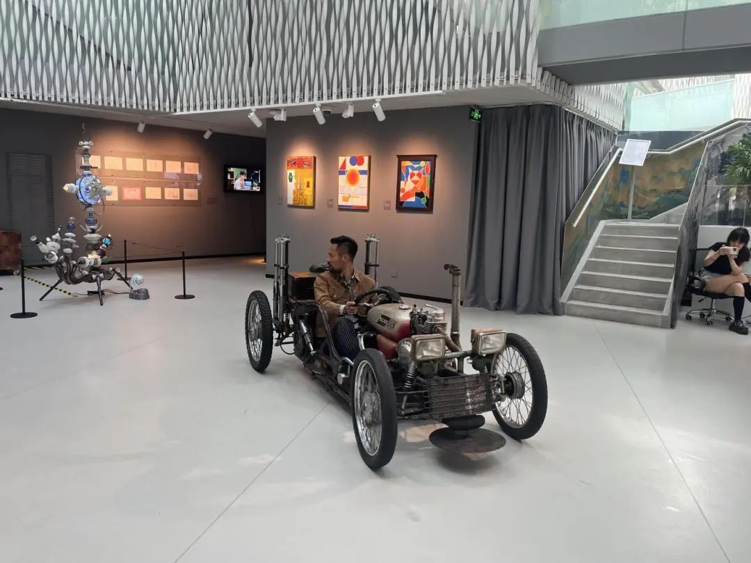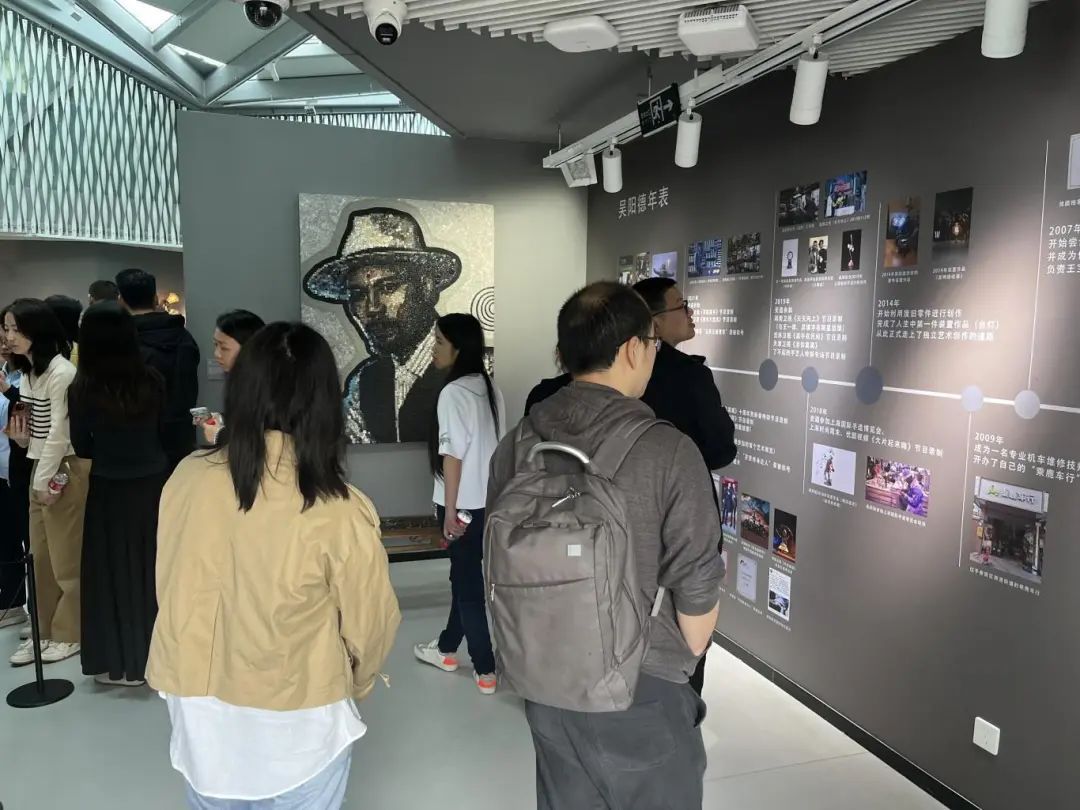不知道大家是否还记得西渡手工达人吴阳德,他既是一位车行老板,专修摩托车、助动车的机械维修技师,也是一位废旧物品手作者,作品曾被多名明星艺人和国内外收藏家收藏。同时,他也是社区的热心志愿者,积极参加志愿者活动,贡献着自己的小小力量。 今年春天,吴阳德在徐汇区的九点水美术馆树屋馆迎来人生中首个个展。最近这一周,不少得知消息的西渡居民,纷纷跨区跑去看展,有的是吴阳德的老朋友,有的只是听说过,大家都想知道,这位手艺不错的社区维修技师的展览到底是怎么样的? 走进九点水美术馆树屋馆,正对大门的第一件展品便是吴阳德今年新创作的《自画像》,用纽扣、纸浆和综合材料制作而成。画中的他就是吴阳德最真实的自己,一把络腮胡子,戴着复古棕色毛呢帽,穿着衬衫,配着马甲。 “两三年前就有想法用纽扣做一幅画,一直没有找到合适的主题。策展人和我提了个展的想法后,我就有了灵感,立刻就计划用废旧纽扣做自画像。这些纽扣都是上世纪40年代到80年代的老纽扣。”对于《自画像》,吴阳德很满意,他补充道:“我平常喜欢出去捡废旧物品,每次去拆迁的地方捡,每次都会捡一点,日积月累,这幅作品大概用了1000多枚废旧纽扣,然后旁边肌理的部分是用废旧报纸做的,很有层次感。” 此次展览展出了吴阳德近10年来创作的近40组装置作品,以及部分绘画、影像、手稿等,《幸福飞驰老爷车》《扭曲的餐桌》《蓝朋友》……每一件都呈现了他天马行空的精神世界。关注环保,让废旧材料焕发新生一直是吴阳德的特色。此次个展的C位是高逾两米的装置作品“定风波”,这是他第一次尝试在金属装置艺术中融入中国陶瓷文化元素。 “金属是比较冰冷而又坚硬的,瓷器非常坚硬又非常脆弱,它们结合在一起就会有极度的冲突感和矛盾感。其实,这幅作品也是反映了我这么多年创造的一个过程,也是野蛮生长的状态,因为我也没有专业系统地去学习过,都是在不断成长。”吴阳德向参观者快乐地介绍着作品的心路历程,有趣的创造过程让大家听得津津有味。 现场很多都是专门来看展的西渡居民或是在西渡工作的年轻人,对于跑来徐汇看展,看的还是西渡居民的艺术展,让他们又新奇又佩服。西渡街道社区青年沈丹萍说:“我觉得好震撼,我没有参观过这样的展览。来之前,我真的不知道我们西渡有一个如此宝藏级的艺术家,他的作品也颠覆了我以往的想象,没想到瓷器、金属,还有木材都可以这样碰撞出火花,挺了不起的。” “如果有一个词形容个展,那就是起航。从开始创造渴望被认可,到今天我能把个展落地,是我新的人生开始起航的过程。”对于可以拥有自己首个个展,西渡“娘家人”还组团来参观,吴阳德依然觉得不可思议,他希望自己可以保持初心,继续快乐创造。他表示,自己的主业还是一位机械维修技师,我不会以营利的目的去创作,希望自己依然“自然野蛮生长”。 市民朱继恒,因为社区志愿服务和吴阳德熟悉,但一直不知道他的旧物创作副业,第一次看到那么多作品,还都是废弃物改造的,让他也觉得又惊喜又佩服。他表示:“接触了很久之后才知道他是个手作者,之前只知道一个作品,因为他把作品捐给了居委。我觉得很了不起,他又要修车,又要创作,社区活动也是依然积极参加。他真的两不误,既能在艺术的道路上追求他的梦想,在社区为人民服务的方面也能得到大家的认可。” 据悉,吴阳德在九点水美术馆树屋馆的个人破界艺术展将一直持续到6月10日,期间还将推出精彩纷呈的互动体验和艺术教育活动,有兴趣的市民不妨前往参观。