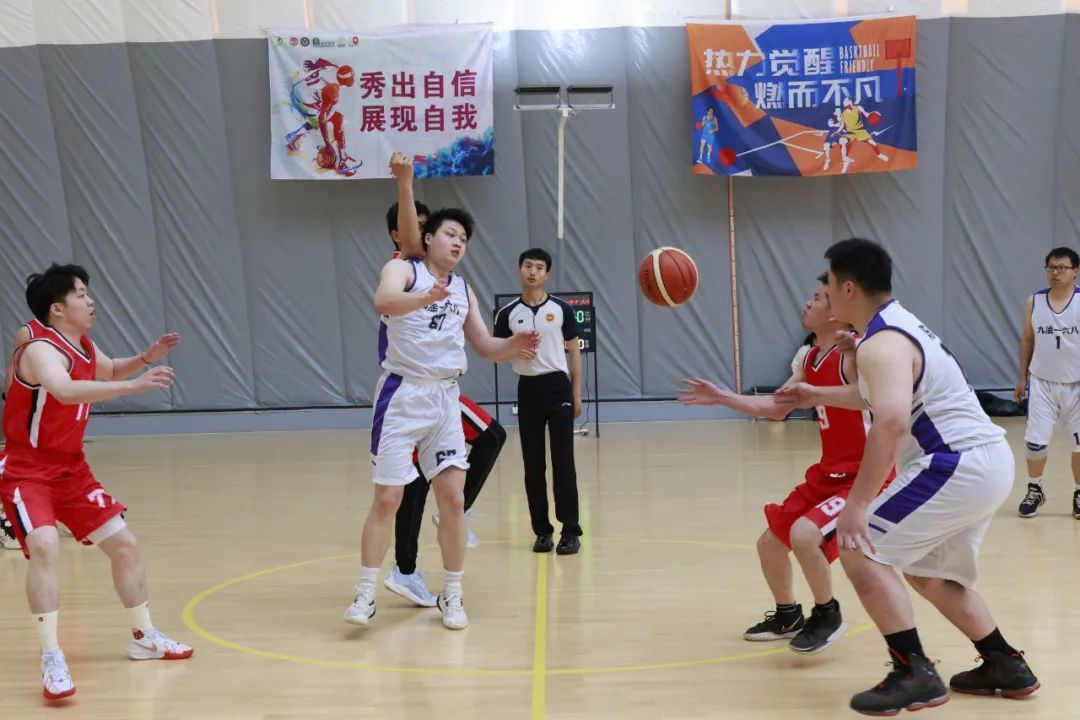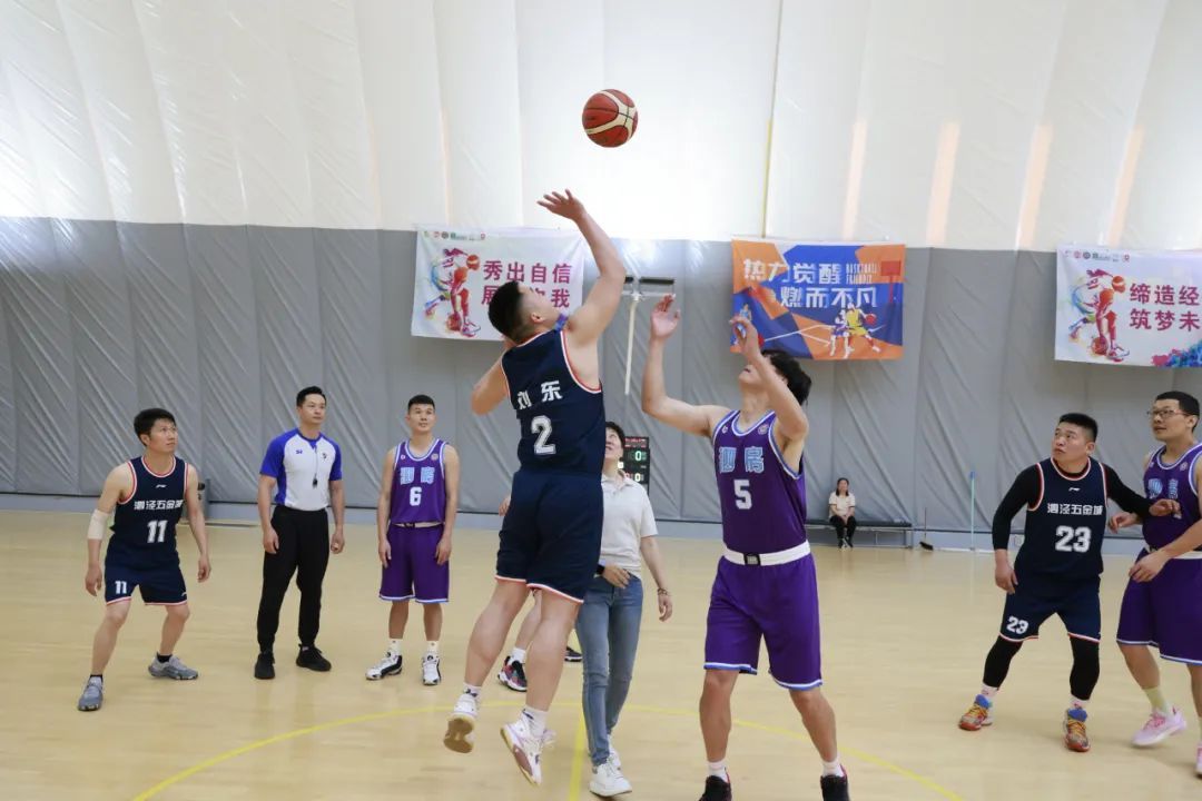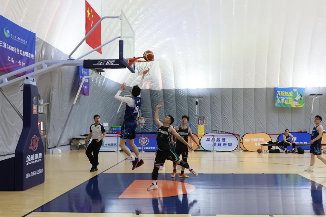 在泗泾都市运动中心气膜篮球馆,来自泗泾镇各企业、居民区、机关、消防的32支队伍的运动员们整齐站立,依次排开。在奏唱国歌、裁判员和运动员代表宣誓后,大家一同欣赏了精彩的武术和体操表演。嘉宾们将手中的篮球分别放入篮筐,宣布比赛开始。