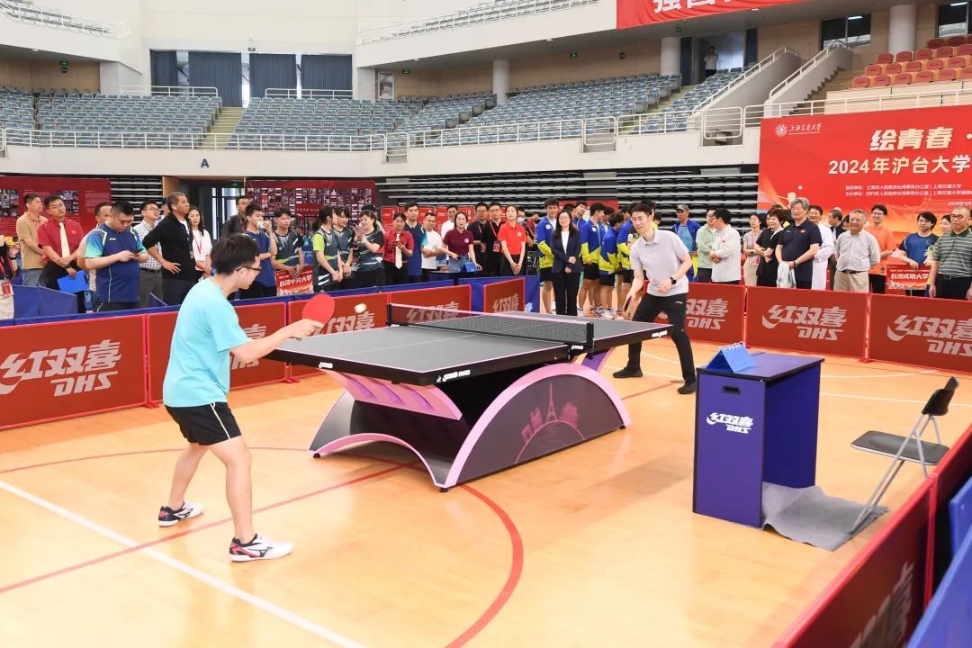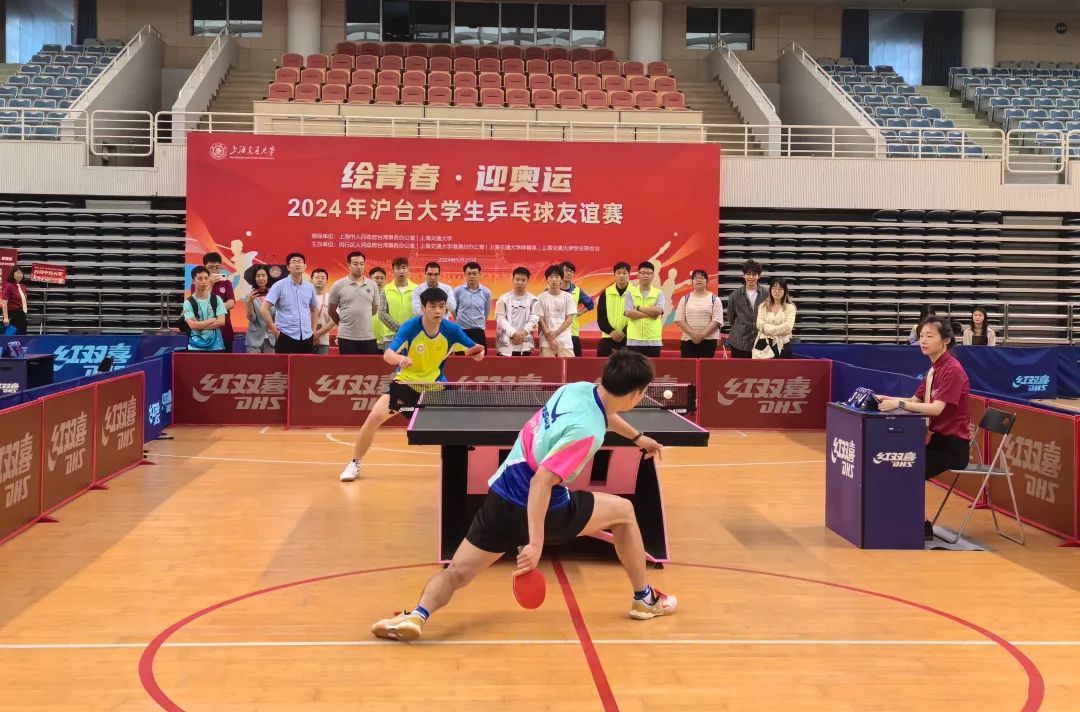 5月25日,“绘青春·迎奥运”2024沪台大学生乒乓球友谊赛在上海交通大学闵行校区举行。来自上海交通大学、华东理工大学、台湾清华大学、台湾成功大学、台湾中兴大学和淡江大学等两岸6所高校的8支乒乓球队共聚闵行,切磋乒乓技艺、弘扬体育精神、拉紧情感纽带。