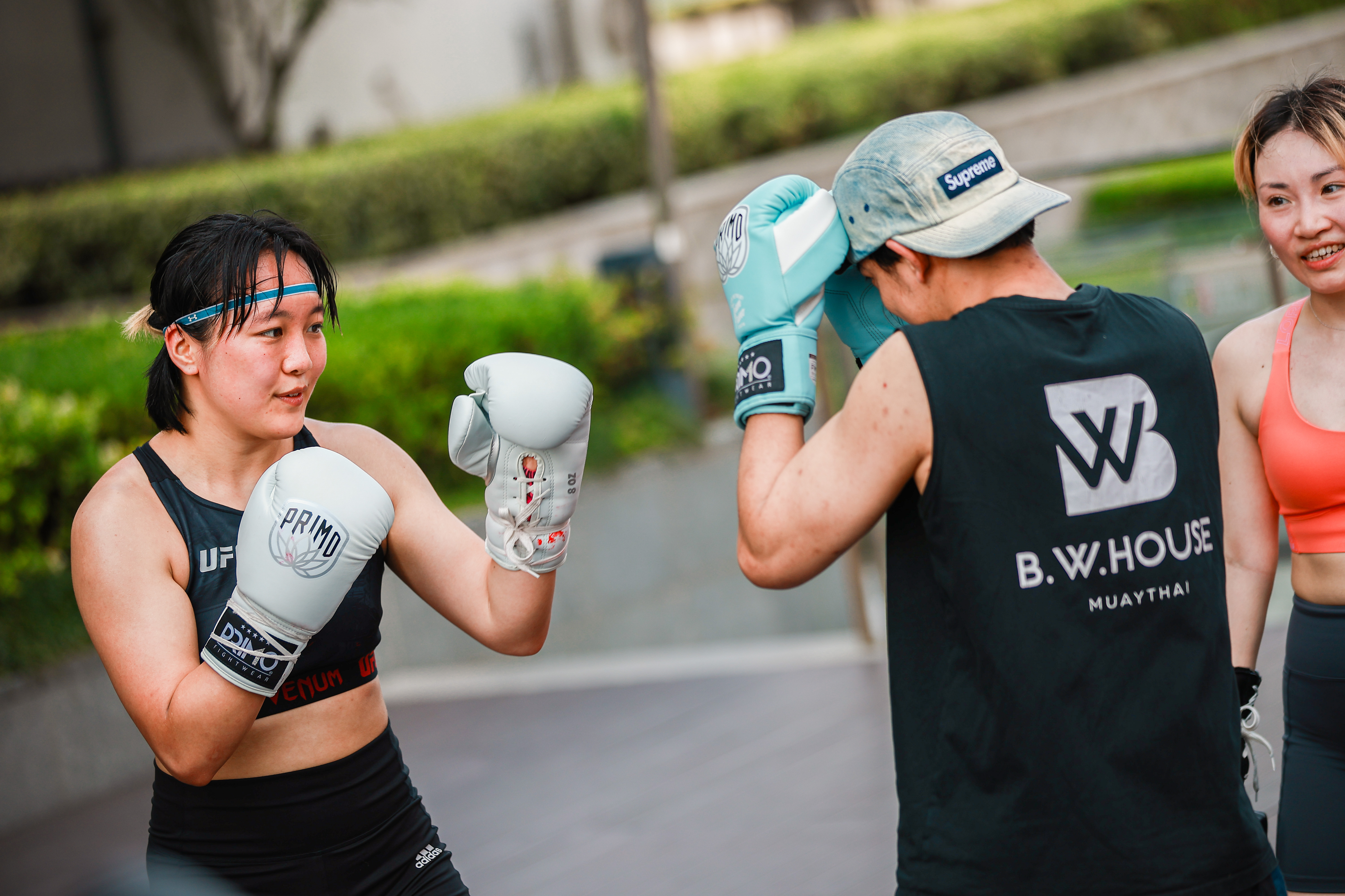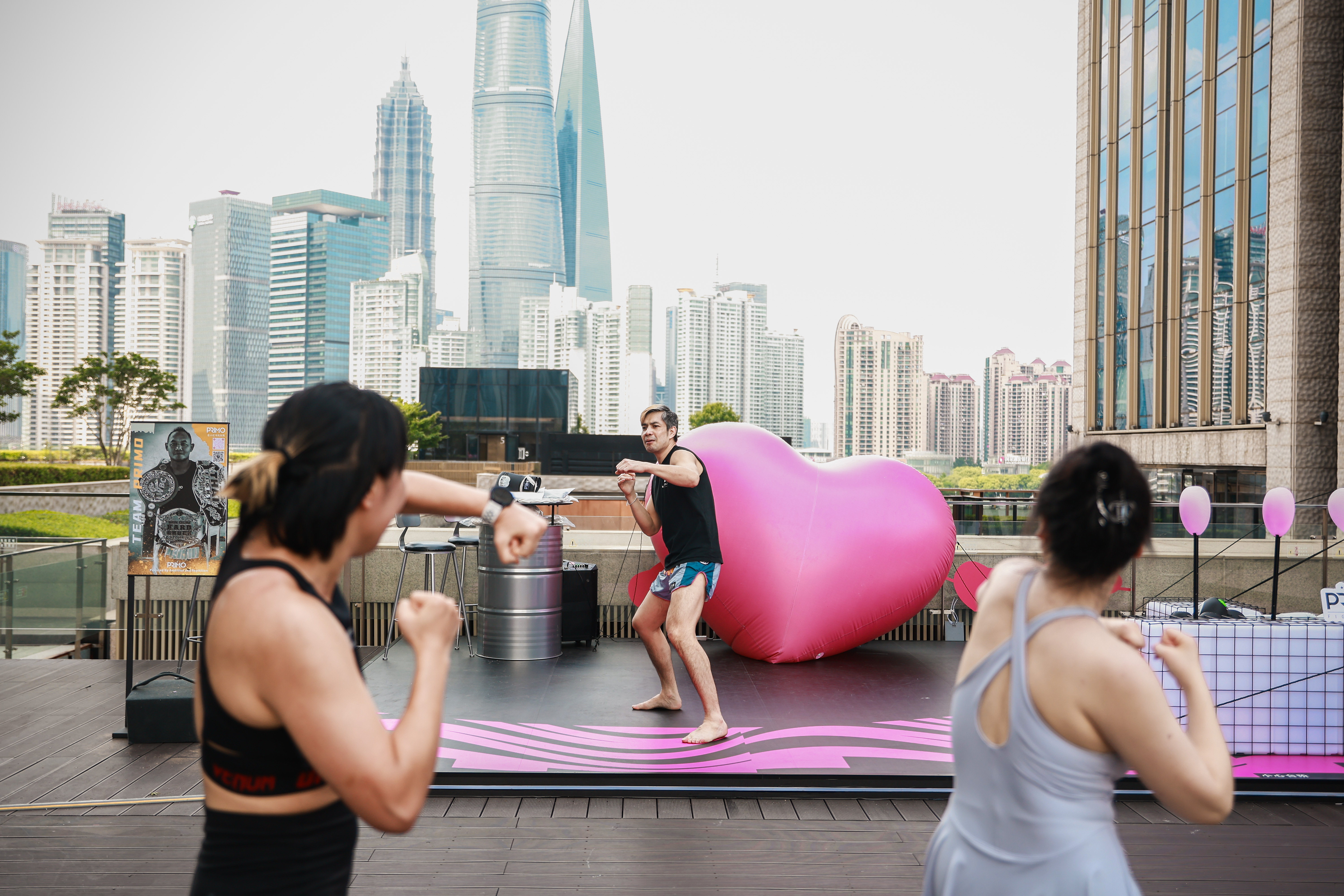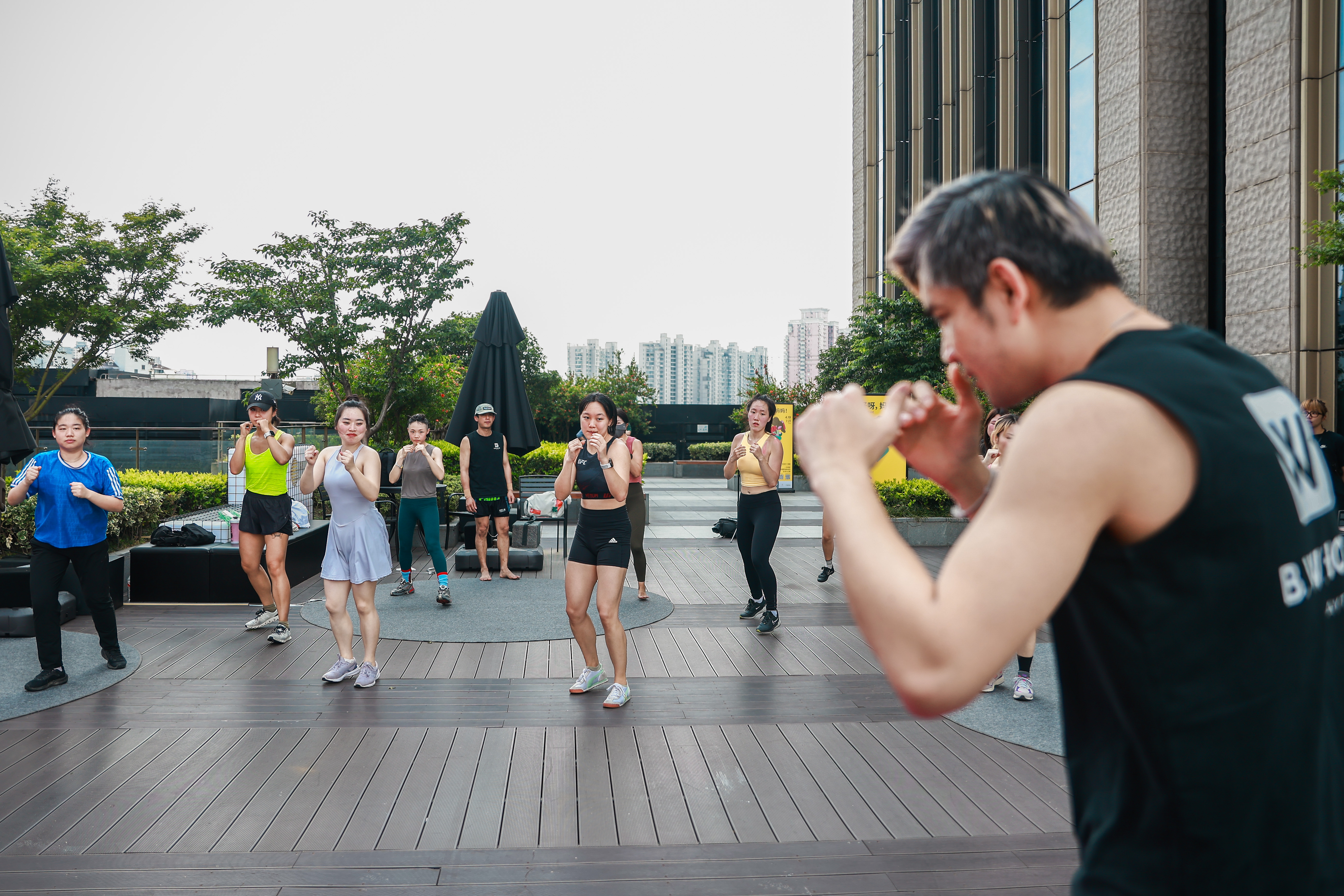 “授课的教练都是拥有百余场职业比赛经验的泰籍教练,从小学习泰拳,所以运动安全是不用担心的。”本次活动主办方B.W.HOUSE泰拳馆负责人张博闻介绍道,“在泰国,大家都是赤脚在户外训练的,与国内传统健身房有很大区别。这次公开课能够在BFC这样外滩核心商圈的露台开课,可谓是闹中取静,也许未来会是一种时髦生活新风尚。”