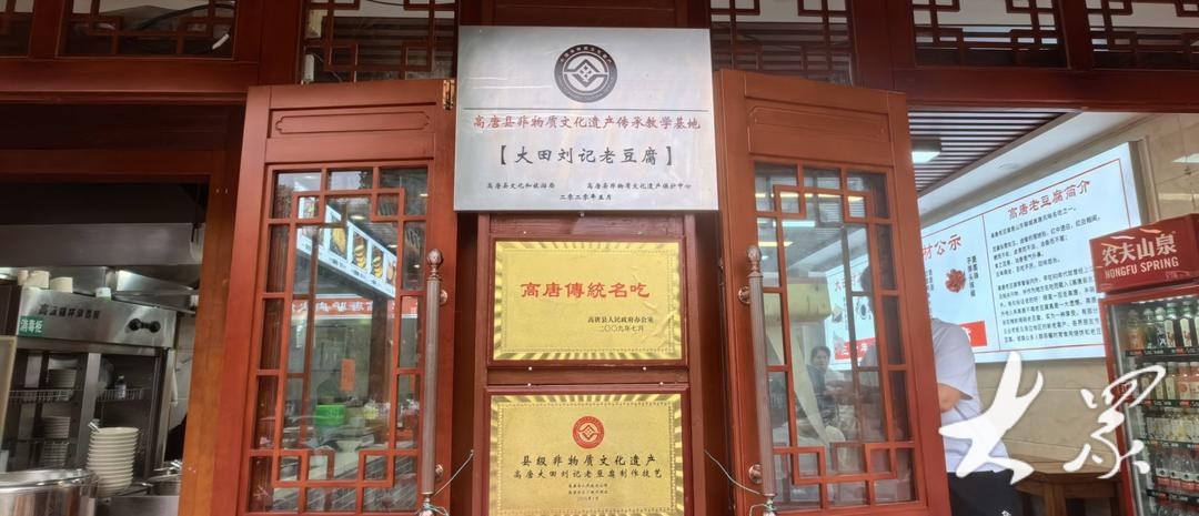 大田刘记老豆腐制作技艺被评为高唐县非物质文化遗产,店铺被评为高唐县非物质文化遗产教学基地。