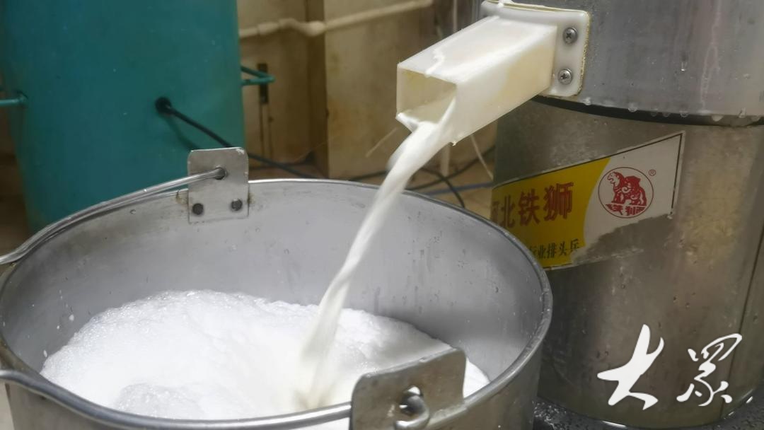 5月24日清晨四点半,位于高唐县的大田刘记老豆腐店里,店主刘洋和他的父亲刘杰已早早开始忙碌。他们先把卤子熬上,随后进行磨豆、煮豆浆、过滤残渣、点豆腐等一系列工序。待豆腐凝固,卤子也熬得恰到好处,整个制作过程不过一个小时。