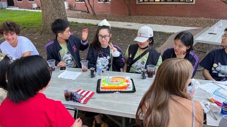 上海交通大学附属中学参赛队队员和友好队一起为队员过生日,照片由学校提供