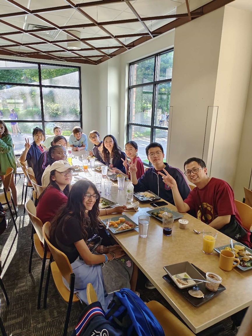 上海月浦实验学校队员和友好队一起吃午饭,照片由学校提供
