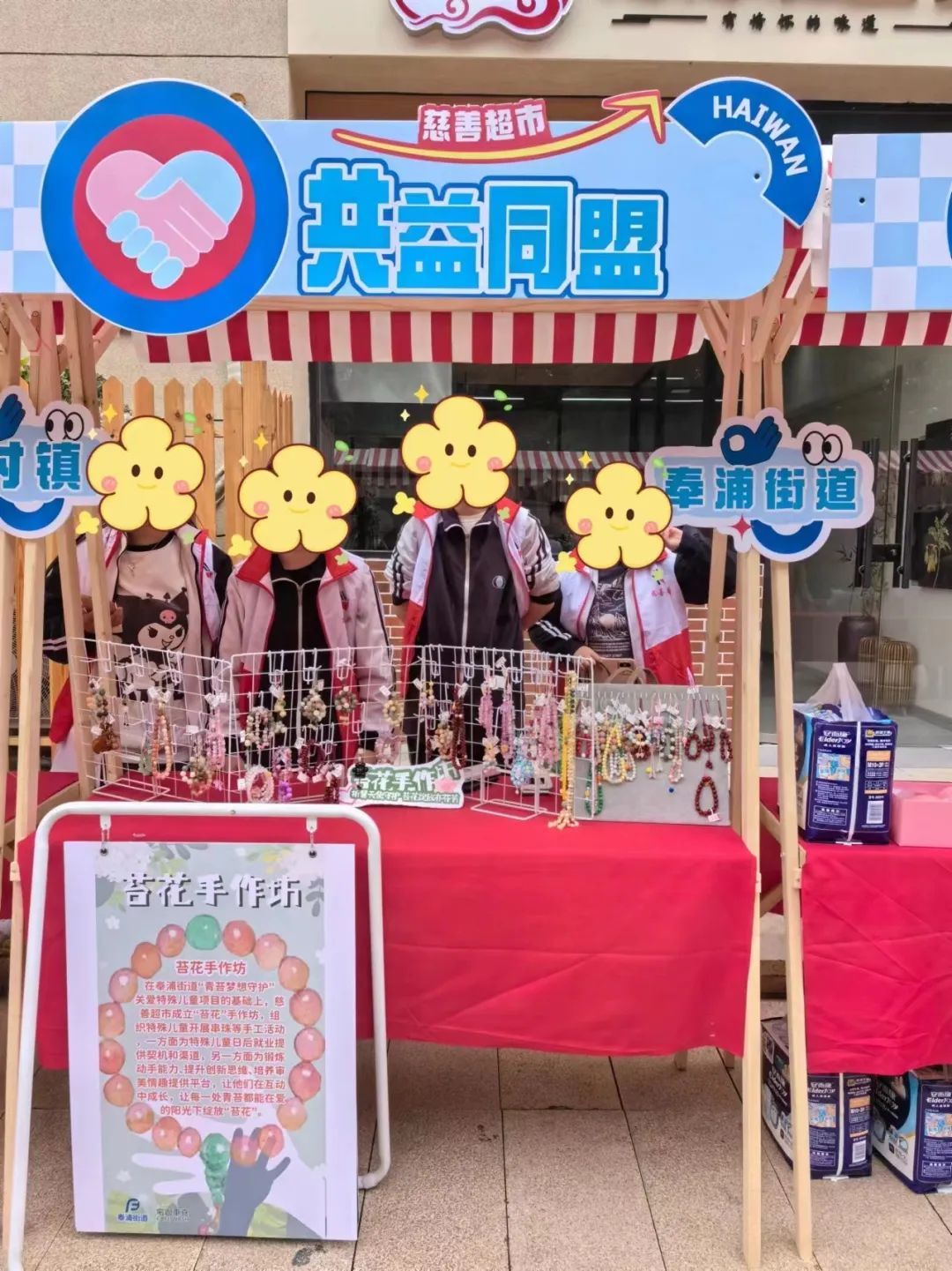 2024年3月,奉浦街道在“青苔梦想守护”关爱特殊儿童项目的基础上,联合慈善超市成立“苔花”手作坊,奉贤区文旅局统战人士为“苔花”手作坊捐赠启动资金。“苔花”手作坊的成立为特殊儿童日后就业提供契机和渠道,同时也为他们锻炼动手能力、提升创新思维、培养审美情趣提供平台,让每一处青苔都能在爱的阳光下绽放“苔花”。