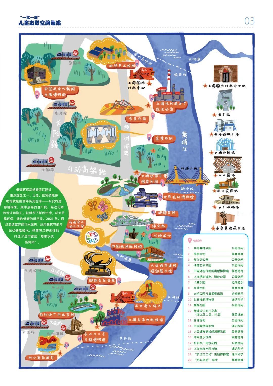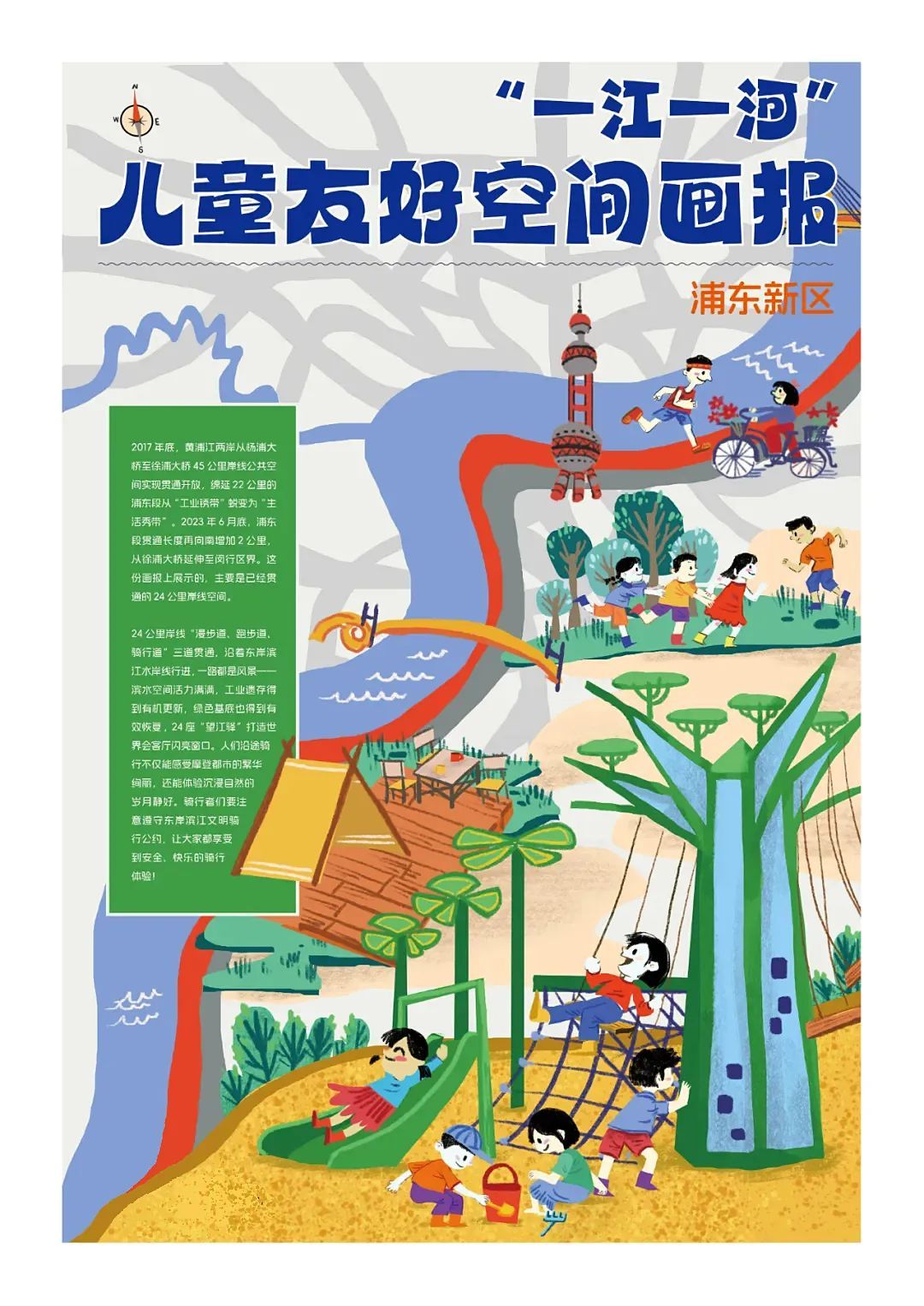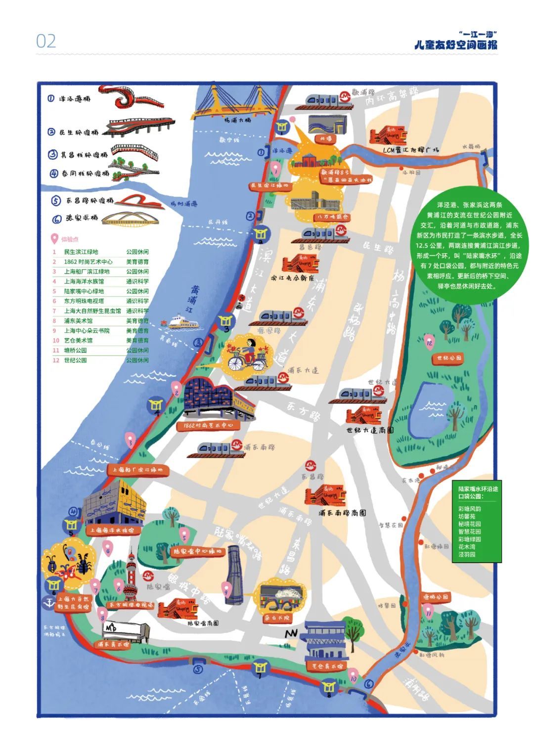 市住建委介绍,@小朋友们,“一江一河”儿童友好空间画报中心城区8个区段分段图绘制完成啦!游玩、骑行、萌宠……快快收藏!一起相约“一江一河”~ < > (左右滑动查看) 杨浦区 < > (左右滑动查看) 浦东新区