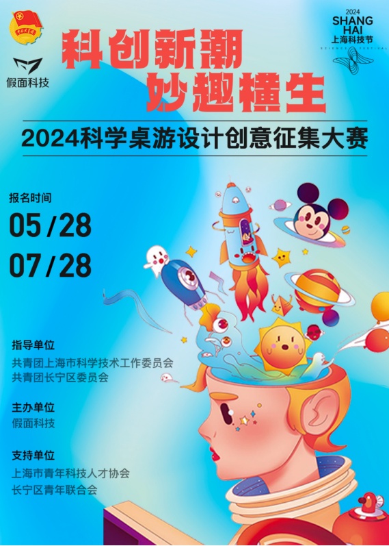 由共青团上海市科学技术工作委员会、共青团长宁区委员会指导,上海市青年科技人才协会、长宁区青年联合会、假面科技等单位联合开展的“2024科学桌游设计创意征集大赛”正式开始啦!