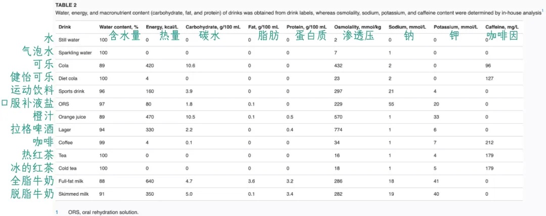 最解渴、“储水”最久的饮料分别是:脱脂牛奶、口服补液盐、全脂牛奶。