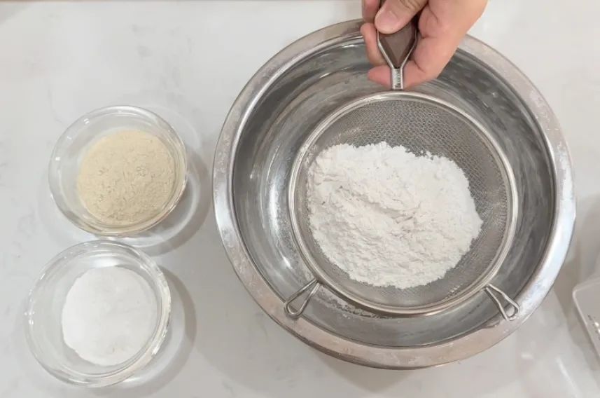 2. 将粘米粉、糯米粉和30g八珍粉过筛;