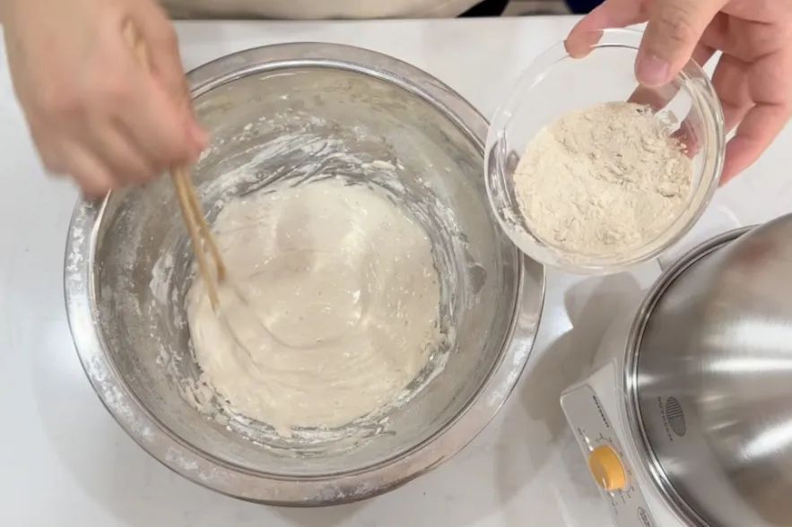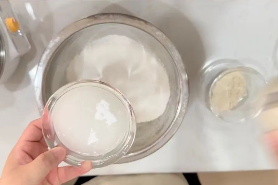 3. 40g糖粉与温水搅匀后倒入搅匀;