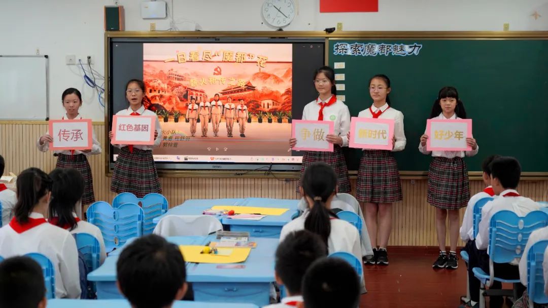 “双减”背景下,学校以前瞻性的视角,积极引入创新性的智慧教育系统,为传统课堂注入了新的活力。老师们在此过程中能对真实问题进行观察和反思,加强课堂教学微技术,项目化学习等新探索、新实践,不断深化课堂教学改革,持续推进教育数字化转型。教师主动与同伴、专家交流探讨,更不断尝试教育教学实践的推进和改善。学校聚焦立德树人根本任务,依托上海市党建课题《党建引领下学校“新时代 大思政”特色教育模式的构建与实践研究》,坚持用党的创新理论铸魂育人,以“新时代 大思政”品牌为核心,加强思政课程与课程思政同向同行,充分发动“家校社政”力量,建立“四位一体”思政育人体系,让思政课有了新的“打开方式”,让学生们在实践中树立理想信念。学校以升旗仪式、学雷锋日等节日为载体,联合共建单位开展了“传承八连精神”“践行雷锋精神”系列活动,同学们在活动中争做“文化自信传承人”,每月4次常态化开展儿科医院志愿服务活动……用自己的实际行动感悟红色精神、体悟道德情感。
