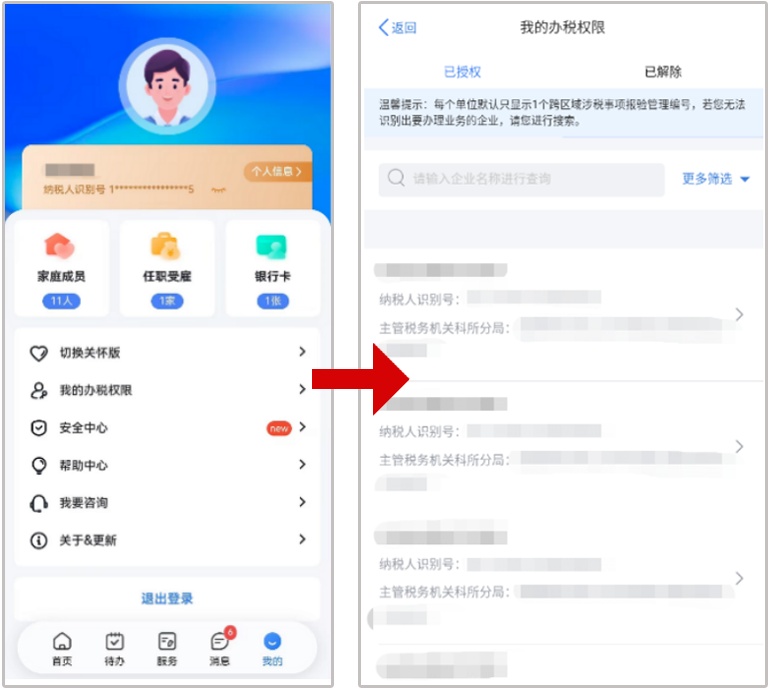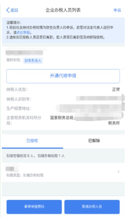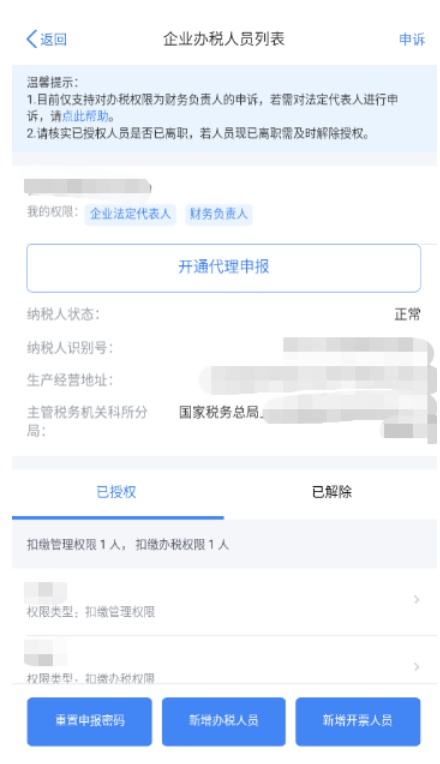 您好,在个税APP里就能操作哦!对于被授予扣缴办税权限、代理办税权限的人员,可以在个税APP的个人中心页面找到“我的办税权限”模块。