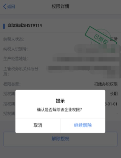 办税人员选择需要解除授权的企业,点击【解除授权】。