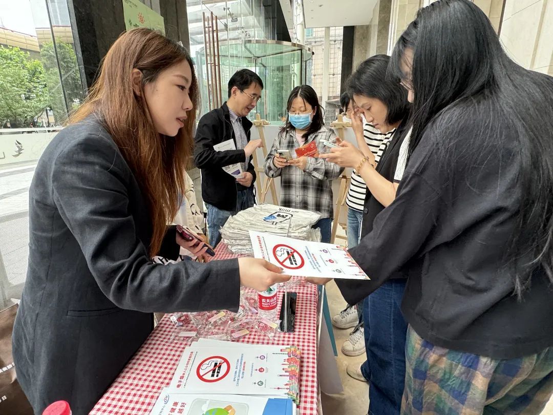 活动现场,来自静安区疾控中心的控烟志愿者向现场人群发放控烟知识、健康生活知识宣传折页200余份,静安区中心医院为有戒烟需求的白领提供免费咨询及戒烟干预服务。