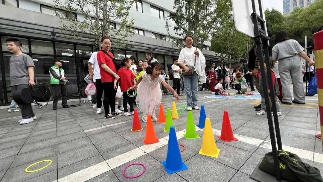 今天,定海路街道联合杨浦区知联会、杨浦区红十字会、创慧坊创意园区,共同举办了一场“滨滨有礼、知童道合——‘六一’嘉年华”活动。现场设置了丰富有趣的游戏,让孩子们体验到了老上海弄堂游戏的魅力。