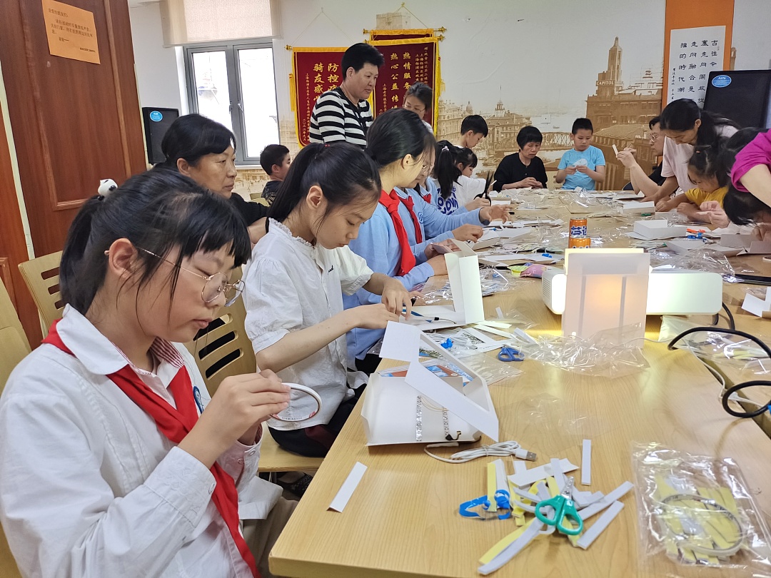 到了“纸雕灯”制作环节,孩子们与家长共同动手,大家拿着彩色图案的纸张认真听讲,细心剪裁,再折叠、粘贴。没多久,一个个精美的具有延吉特色的纸雕灯逐渐成形,吉祥物“延小吉”也出现在了纸雕灯上,活泼可爱,每一个作品都充满了童真和童趣,更充满了对社区美好的祝愿。