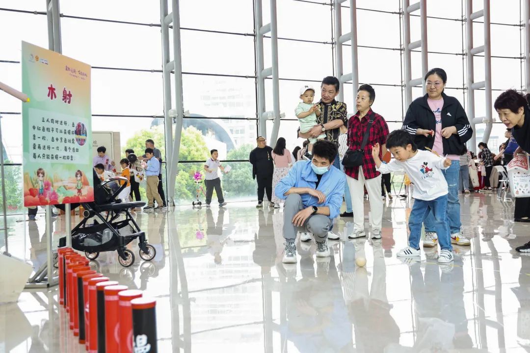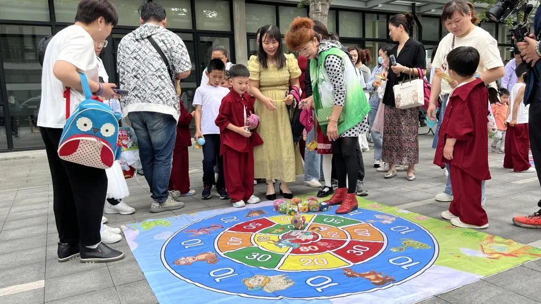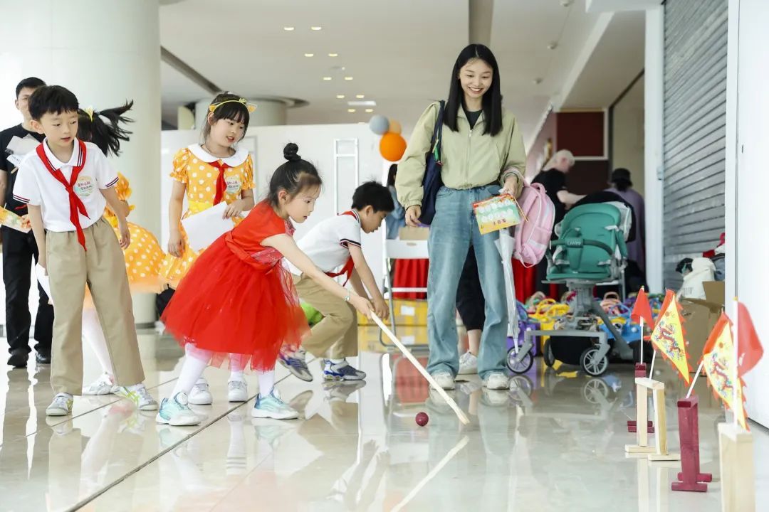 游园会在乐又靓幼儿园舞蹈、齐齐哈尔路第一小学相声表演中拉开帷幕,木射、投壶、蹴鞠、捶丸、拓印、孔明锁、糖画等传统文化游戏,以及现代游戏电臀达人、合力运球等等,成了游园会上的“香饽饽”。