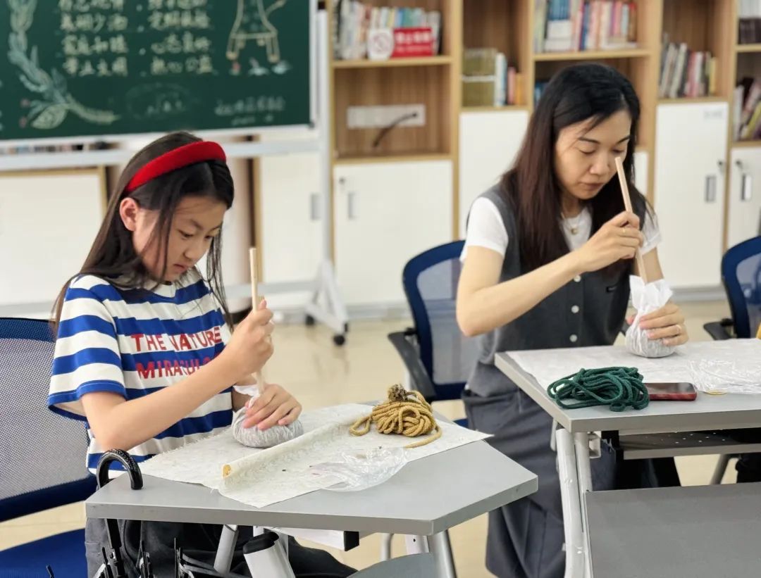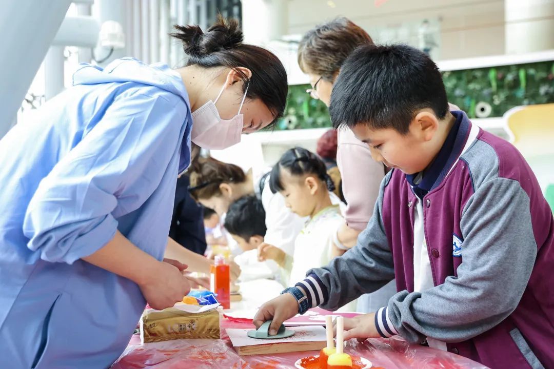 除了传统文化游戏外,现场还有拓印、孔明锁、糖画等体验和品尝项目,孩子们可以拓印一张属于自己的拓印画,吃一个自己点名制作的小鸭子糖画,每个人都乐在其中。