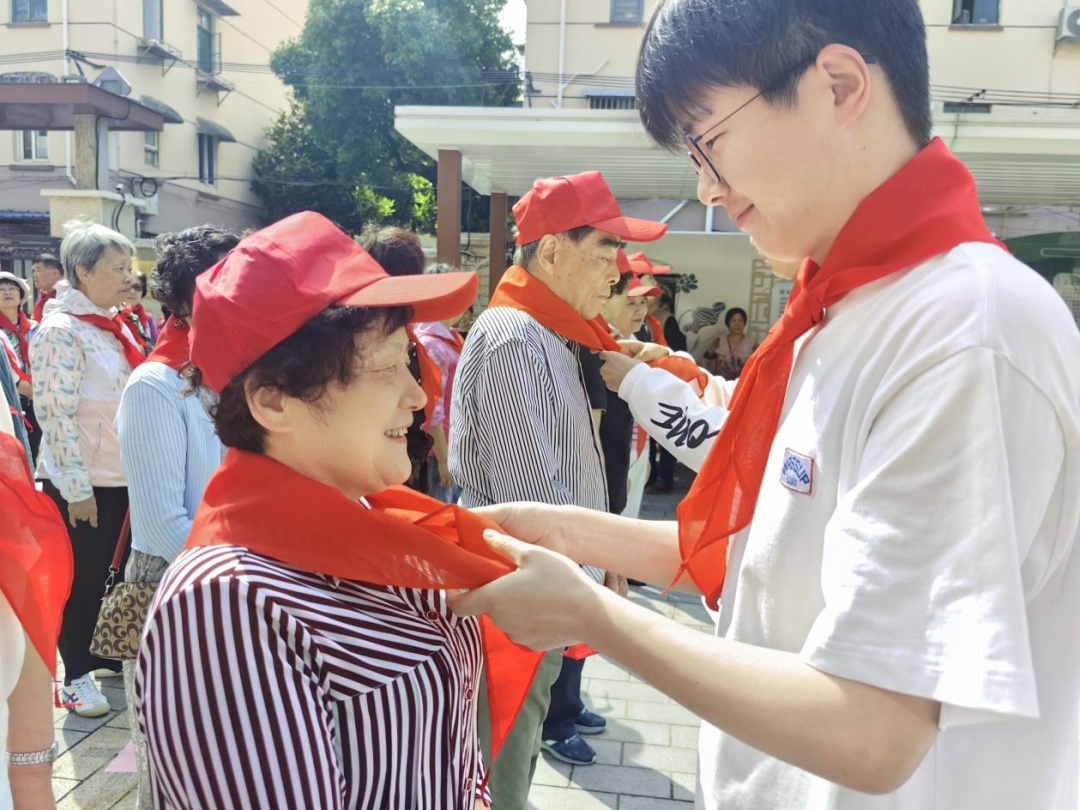 活动伊始,上海理工大学学生为社区居民佩戴红领巾仪式,共同唱响少年先锋队队歌,表达对党的热爱和对革命先烈的崇敬之情。紧接着,大家参与了一场精神文明创建知识竞答,既锻炼了思维,又学习了文明知识。两位社区志愿者讲述自己身边发生的文明故事,用真实的故事感染他人,传递正能量。