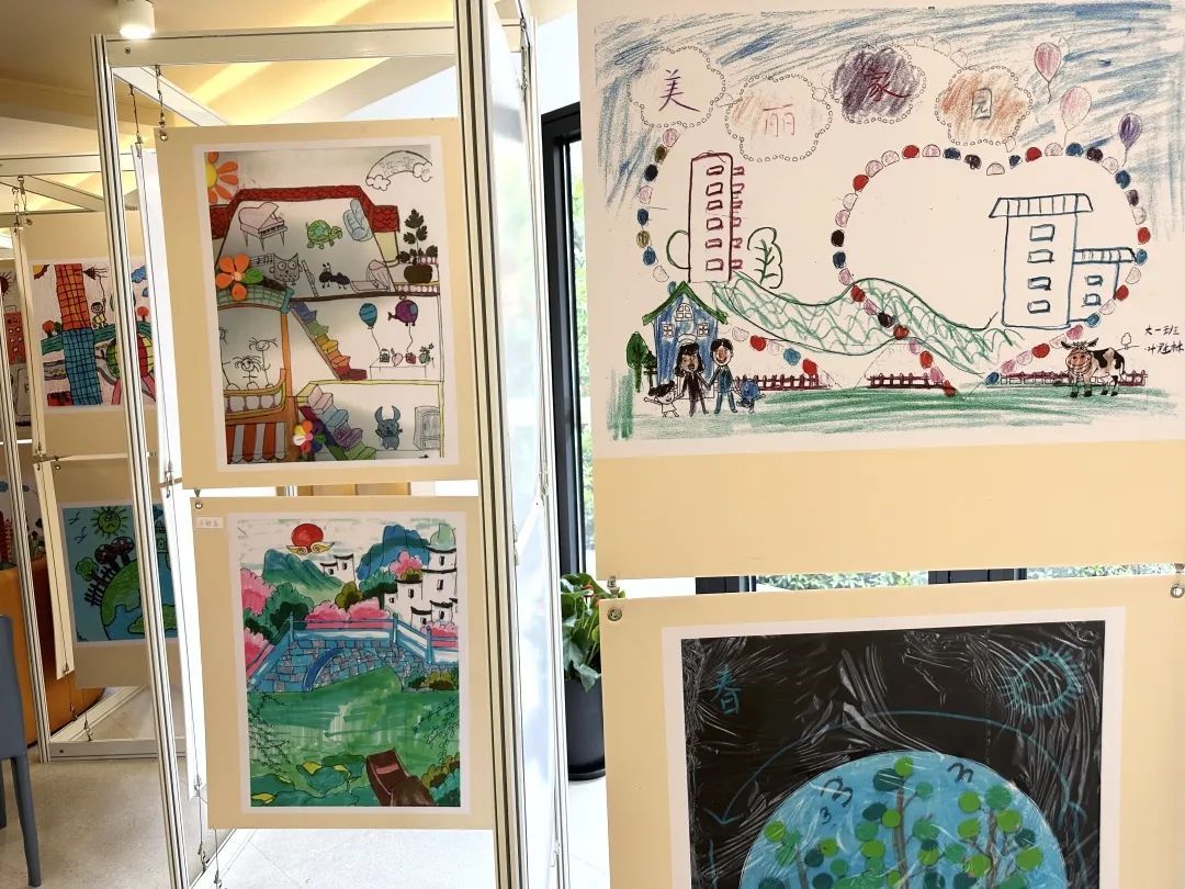 睦邻中心精心布置了小画家画展,这些画作均由向阳幼儿园的小朋友所作。其中既有他们眼中家园的模样,也有他们眼中地球的样子,极具童心和想象力。“孩子眼中的世界总是这么美好灿烂。”一位家长在画展前感慨道。