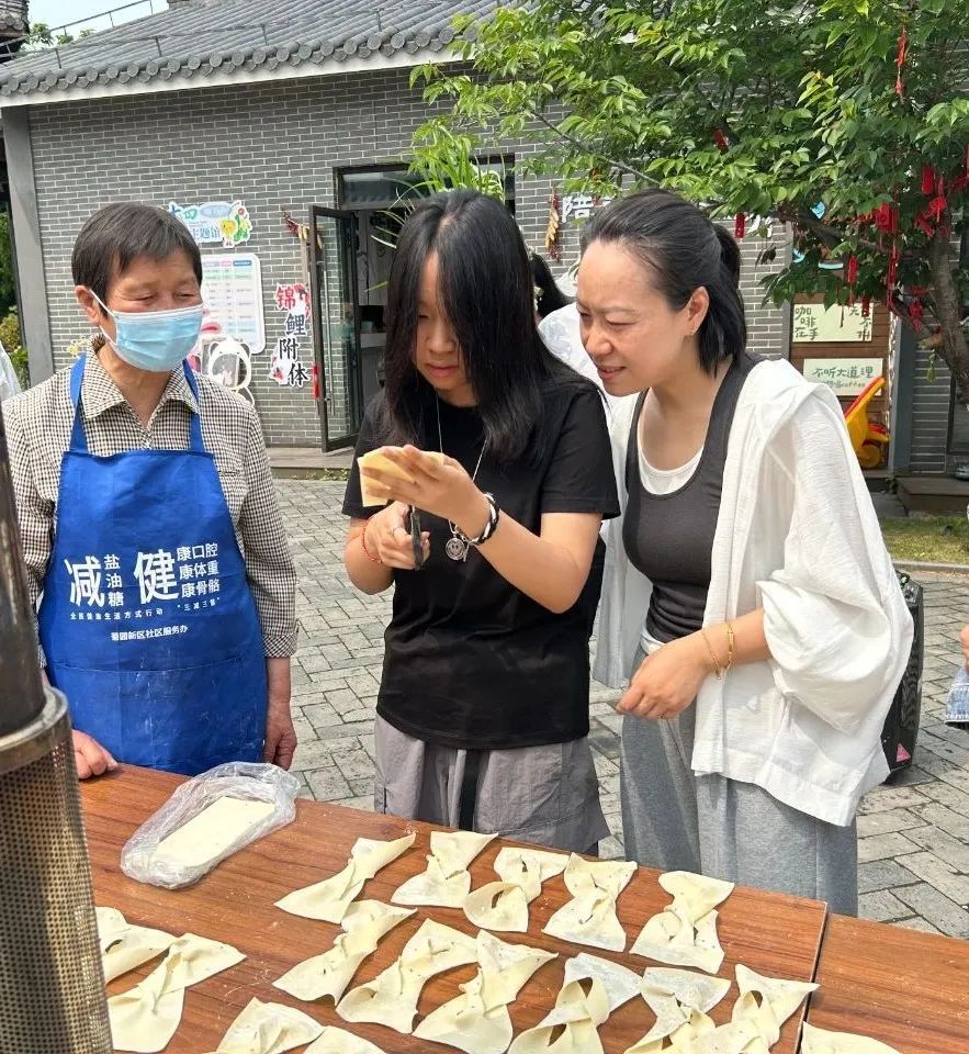 “我们充分利用百果园内丰富的资源,为孩子们精心策划了一场充满祝福的迎考活动,还邀请了嘉定菊园本地原住民志愿者,教孩子们包粽子、做‘烤