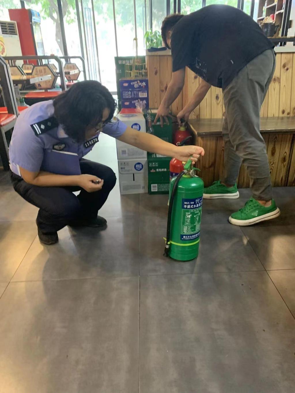 在走访过程中,民警除了对沿街商铺的消防设施、安全出口等方面进行了全面的检查,还排查了店铺是否存在火灾隐患、消防通道是否畅通等问题。同时,民警还对沿街商铺的工作人员进行了消防宣传和相关法律法规的宣讲。民警在检查灭火器时,向沿街商铺的工作人员展示了灭火器的使用方法,并且结合了相关的案例,让消防安全知识变得更加生动。