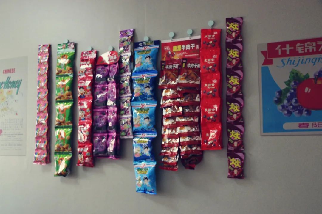 小卖部的墙壁刷着复古绿漆,墙上还张贴着极具年代感的复古画报,营造出浓浓的怀旧氛围。
