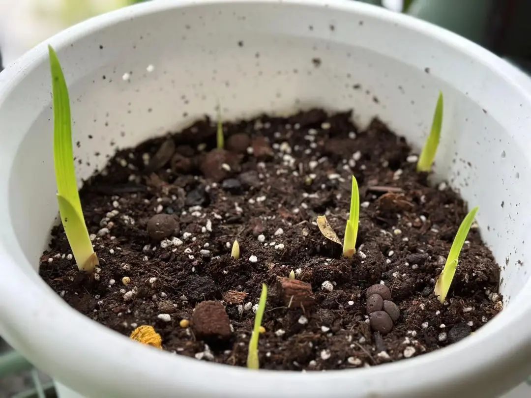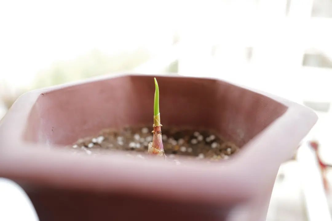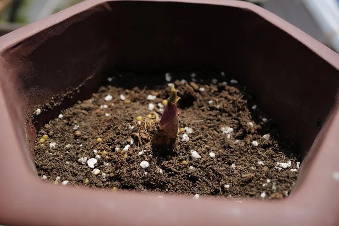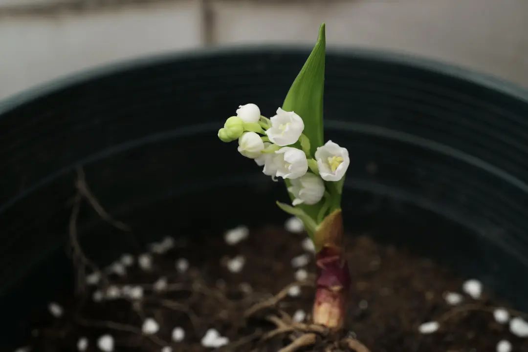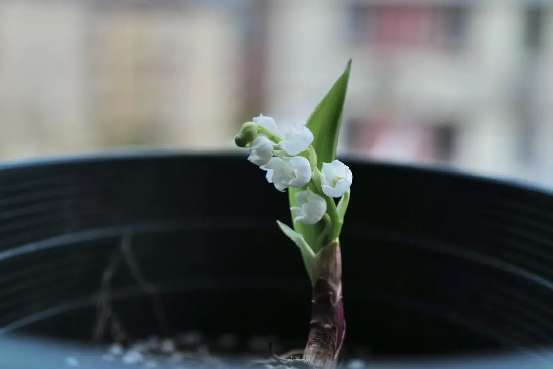 去年寒冬,在土里埋下两个铃兰根球。气温对植物挺不友好,有阳光的时候就搬去户外晒个够,太阳下山冷风飕飕,立马搬进室内御寒。见干见湿,天天重复。铃兰需要排水性好的土壤,选用透气好的盆和泥土。待到春暖花开,渐渐地,小花盆里慢慢有了动静。小小的绿芽破土而出,春天是植物茁壮成长的好时节。