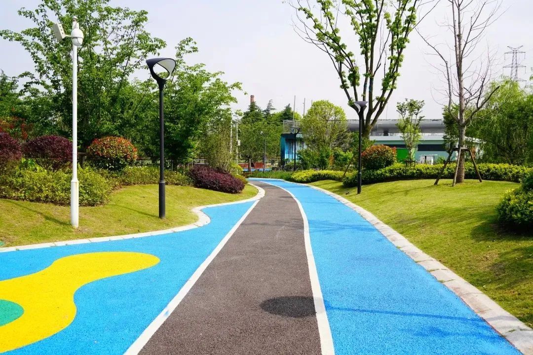 被绿化环绕的体育公园,有樱花、海棠、木绣球等花灌木和槭树、枫树、无患子等色叶树,营造了春华秋实的自然景色。公园内鲜花盛开,绿意盎然,呈现出绿体融合、自然时尚的特点。