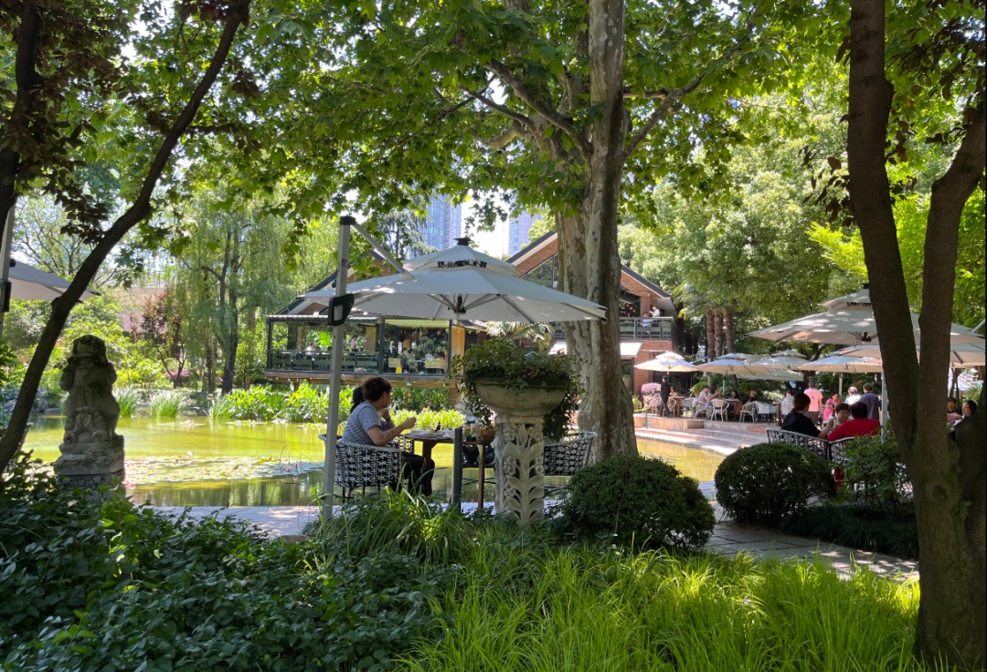 在静安公园的绿树湖水之间吃一顿午餐,闹中取静的环境带来度假的感受。