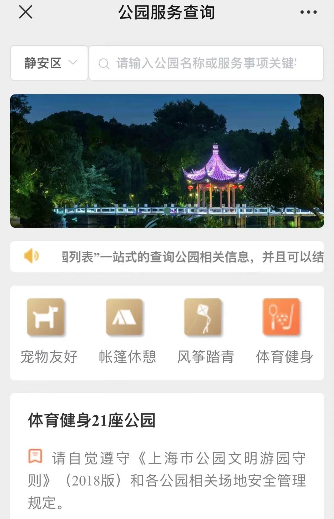 目前,静安区共有21座公园配备了体育健身的设备设施。