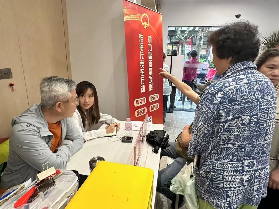 淮海中路街道代表团里有三位代表来自淮海集团,分别是淮海集团党委书记、董事长张敏;上海益民商业投资发展有限公司、上海星光照相器材批发市场经营管理有限公司总经理、董事长周斌;上海益民置业发展有限公司副总经理王蕙,他们当选区人大代表之后,一直心系淮海居民,在今年的“高质量发展 代表在行动”主题活动中,他们不仅在繁忙的工作之中按时到“代表联系点”接待选民,还经常深入居民区听取民声,在和淮海居民们交流过程中,他们发现不少居民反映,老字号都集中在淮海中路那头,淮海中路街道辖区内反而网点较少,在张敏代表的牵头下,三位代表整合资源将“老字号”专场送到了“淮海家·零距离家园”,让淮海居民在家门口就能买到老字号的产品。