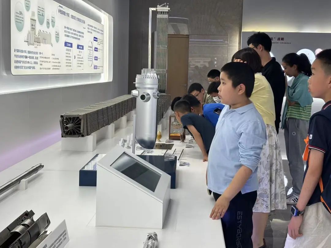 核电能为我们带来什么好处?核废料分为哪两种类型?……在核工院的科普课堂上,孩子们的好奇心被一个个问题彻底激发。核电科普志愿服务队的科普老师深入浅出地讲解了核电的奥秘,从核电发电的原理、核电的本质、核电的意义三个层面出发,引领大家初步了解什么是核电。实地参观环节中,孩子们在核电展厅近距离观察“国和一号”等模型,直观感受科技智慧。