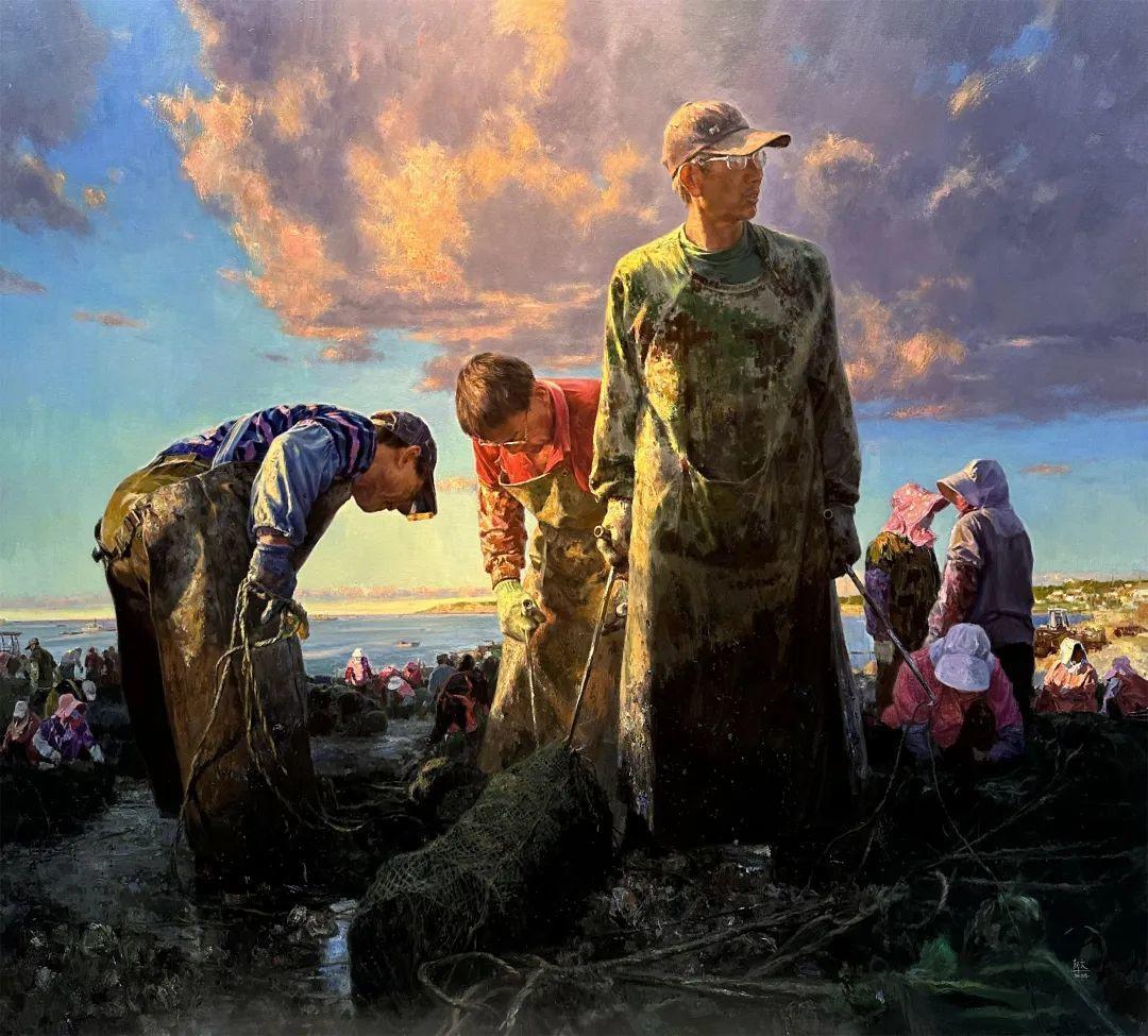 张新文 《耕海晨歌》 210×230cm 油画