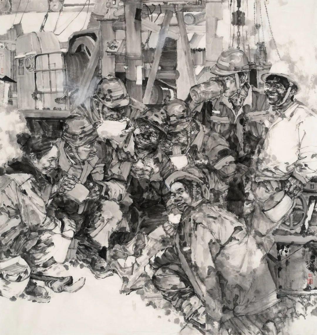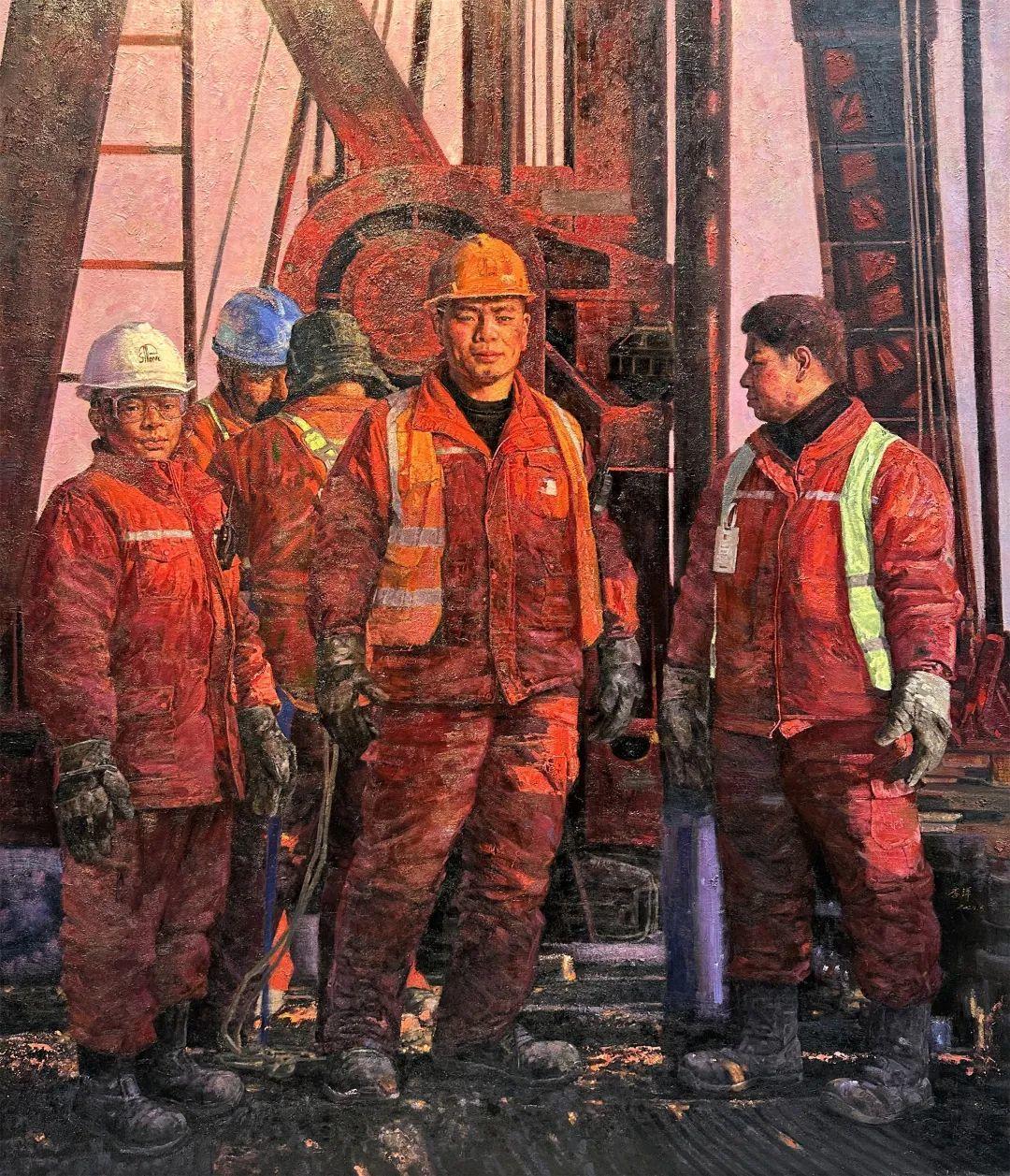 李洋 《黄河钻井队40662队》 220×190cm 油画