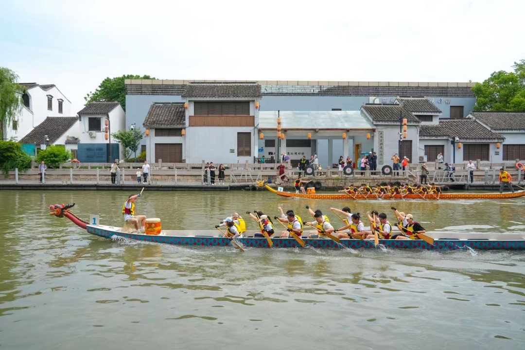 6月2日上午9点,清名桥畔人声鼎沸,伴随着阵阵鼓点声、激情呐喊声,12支龙舟队、200多名选手展开激烈角逐。船桨齐舞翻飞,在碧波中画出朵朵涟漪,一艘艘龙舟宛若离弦之箭“飙”向终点。