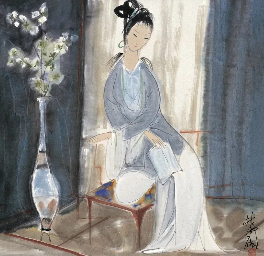 林风眠(中国,1900-1991),《读书仕女》,20世纪,纸本设色,68×68cm